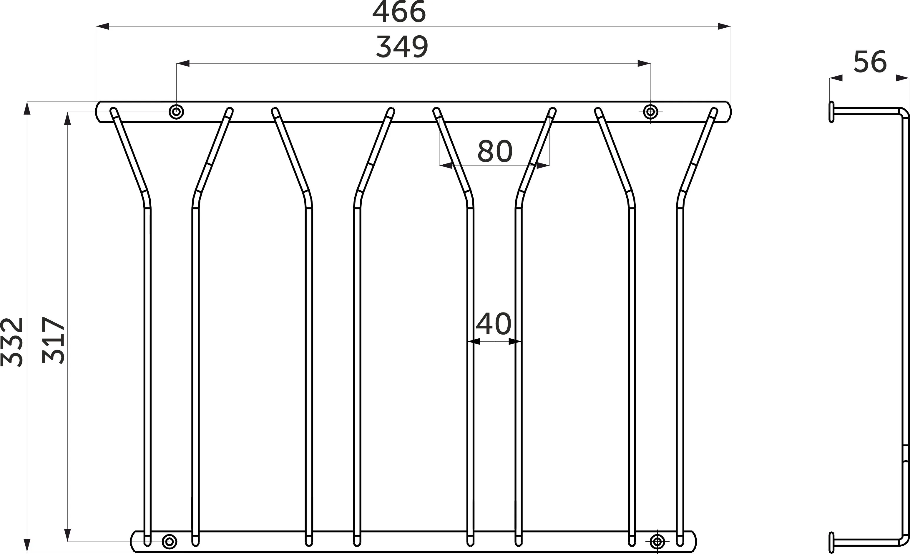 Вешалка настенная на 5 крючков 400*60*40, хром AKS