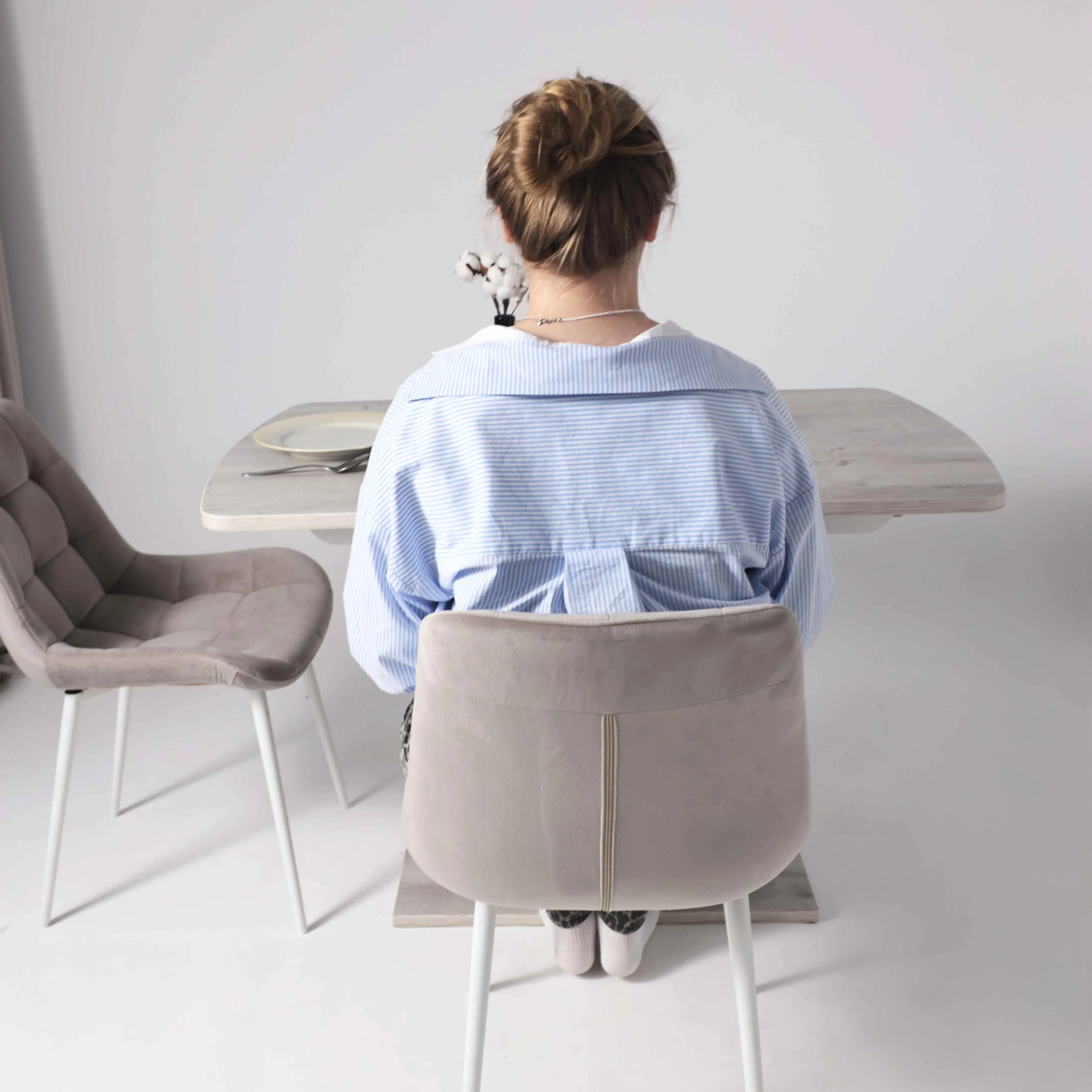 Кухонный стул в мягкой обивке из бархата без подлокотников. Анатомическая форма сиденья обеспечивает удобство, а декоративная стяжка придает объём и защищает от образования вмятин.