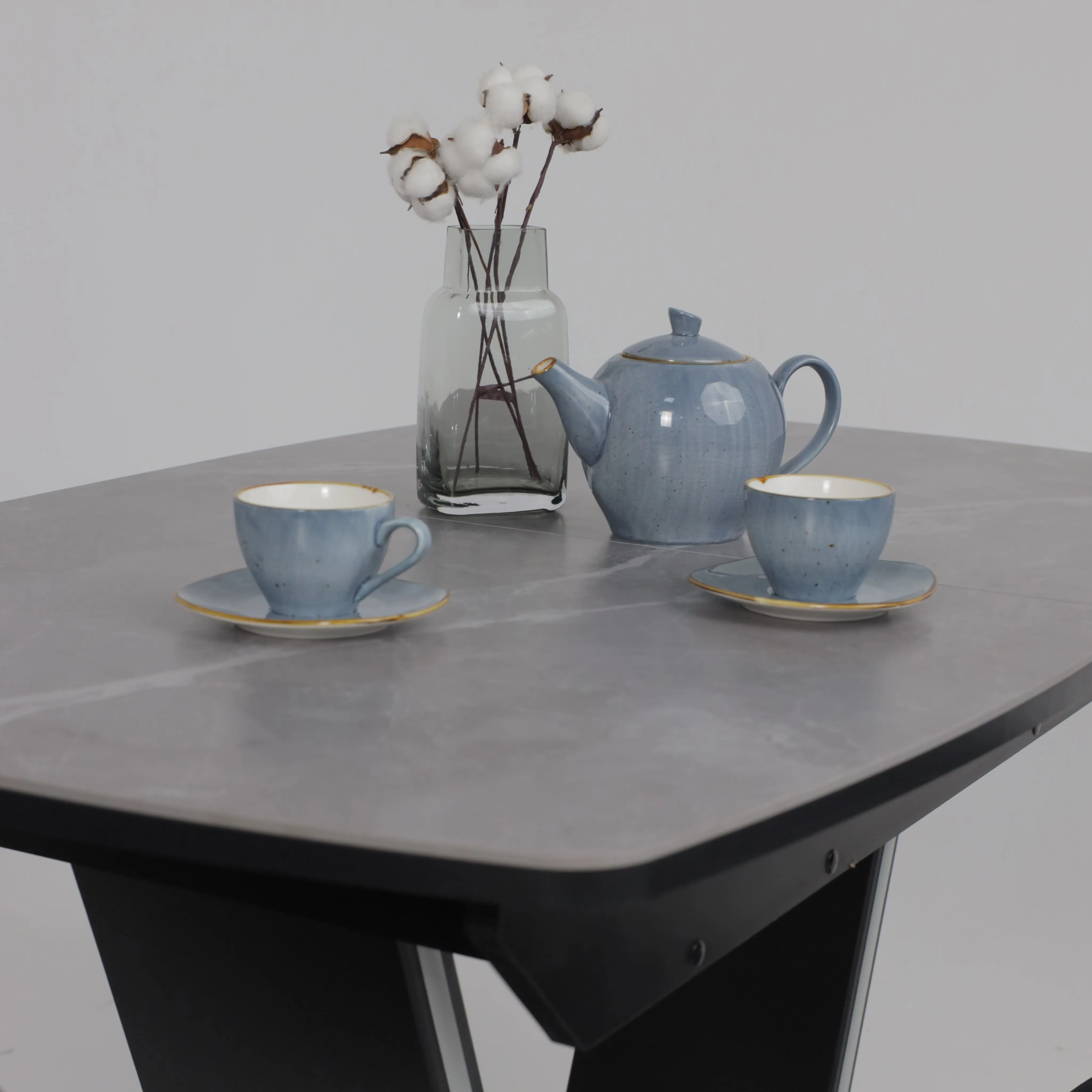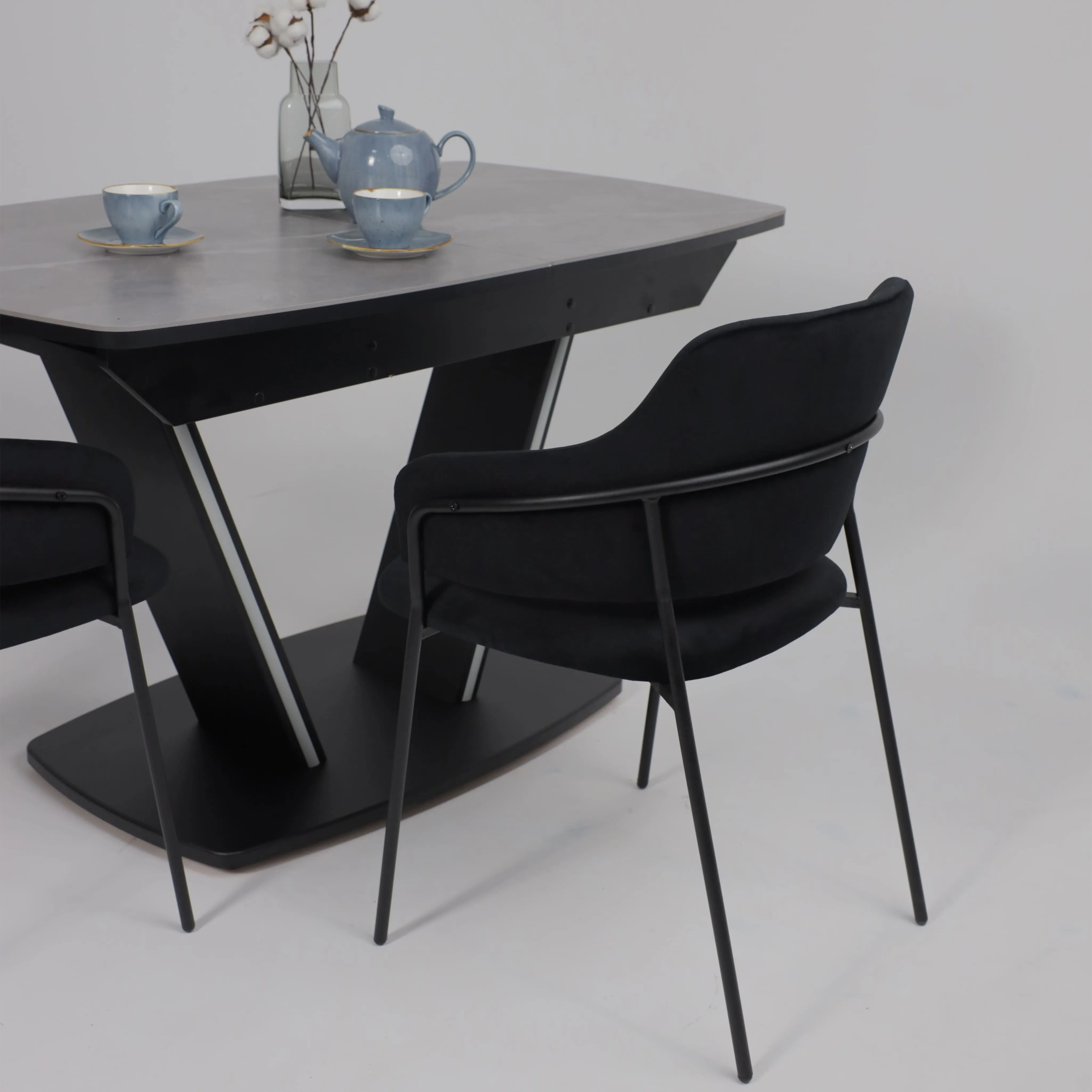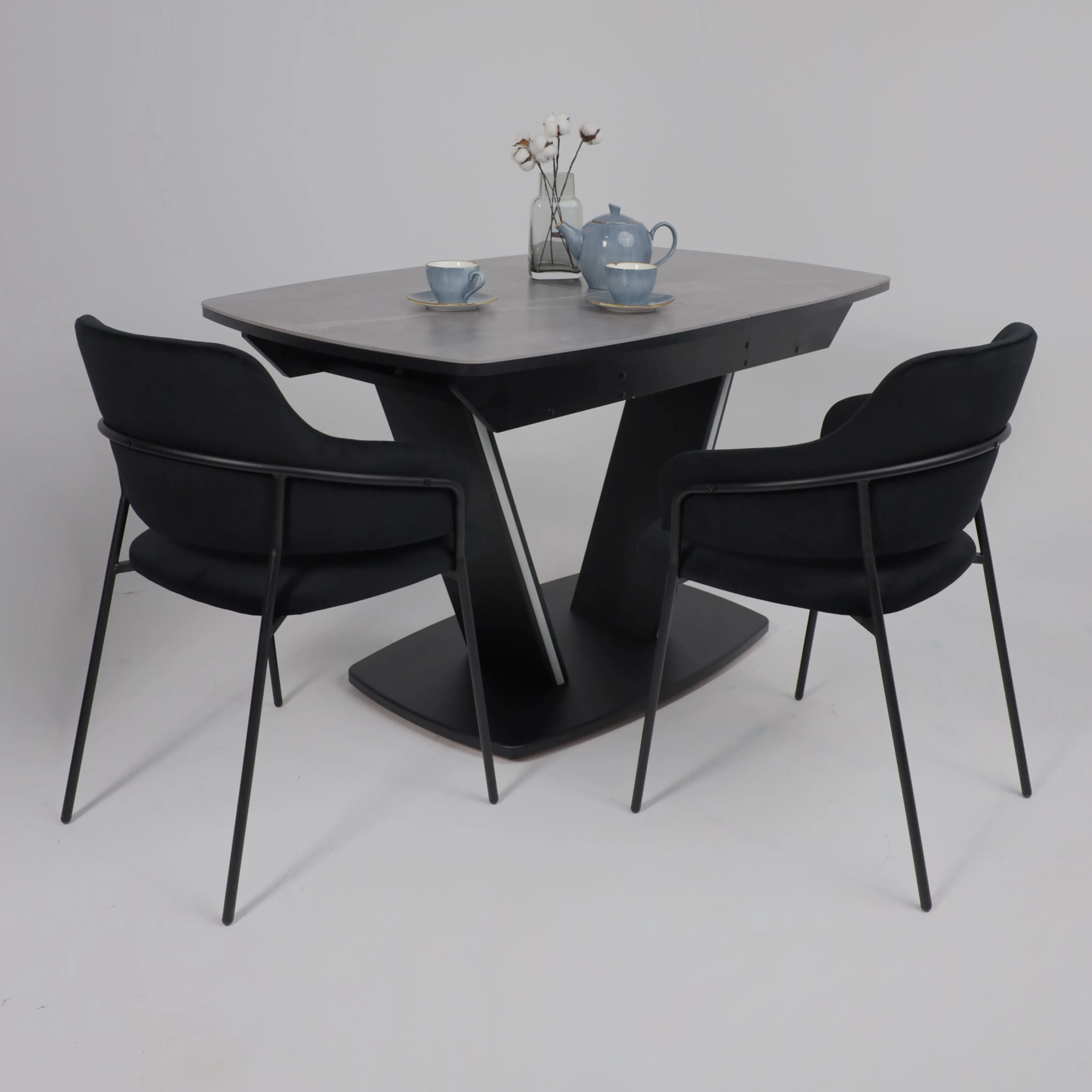 Стол TIRK RADIAL-94, раздвижной 94(126)х64, Дымчатая керамика/Чёрный