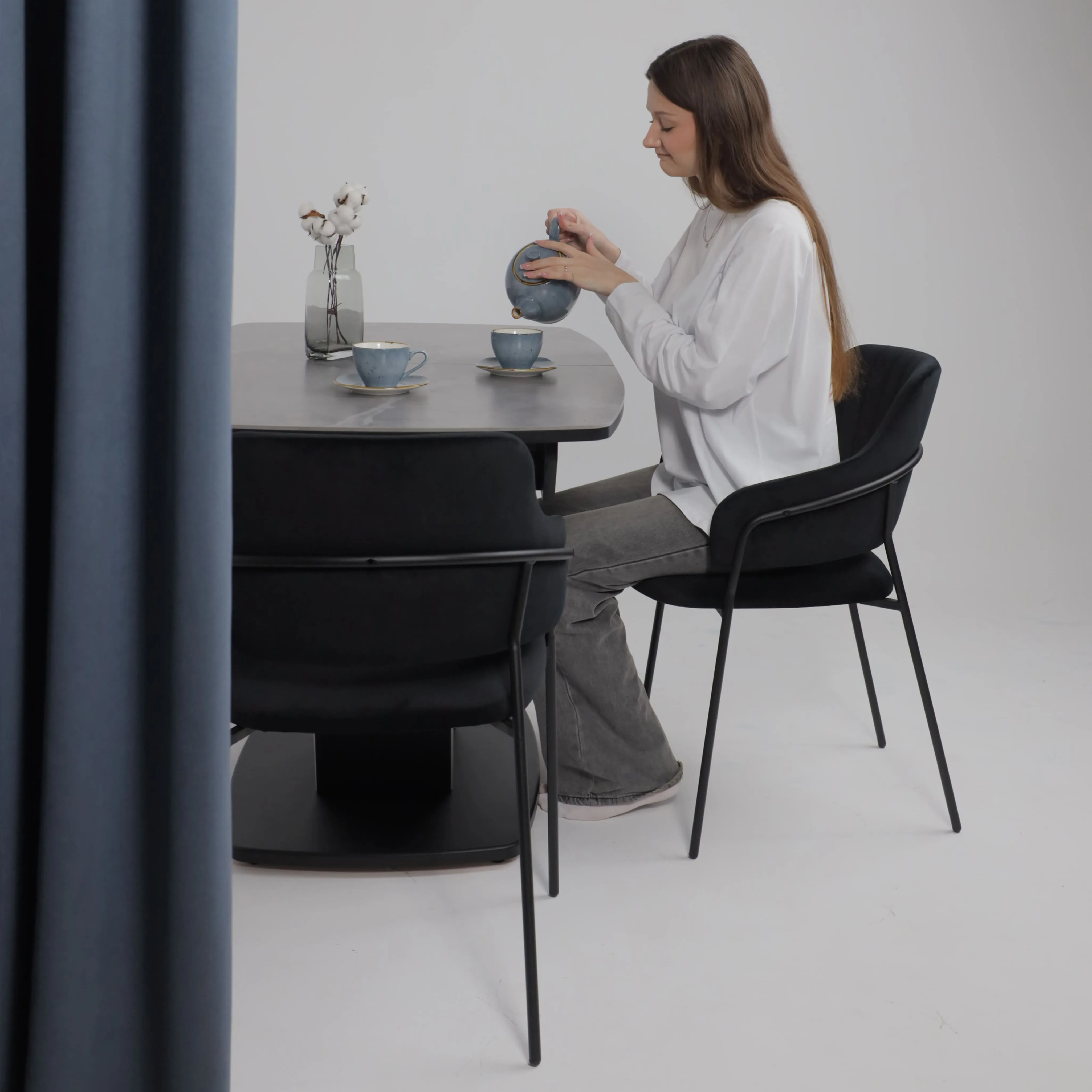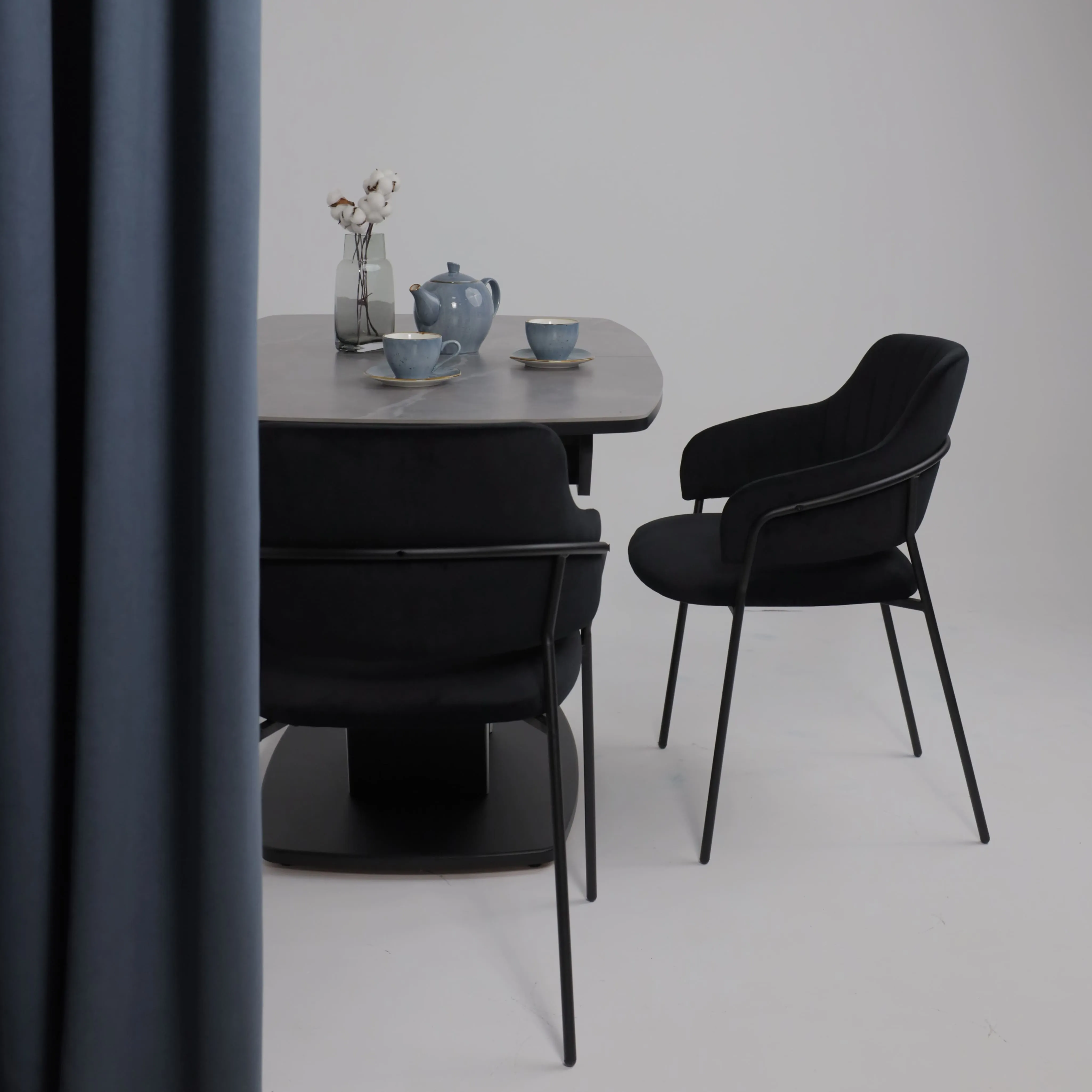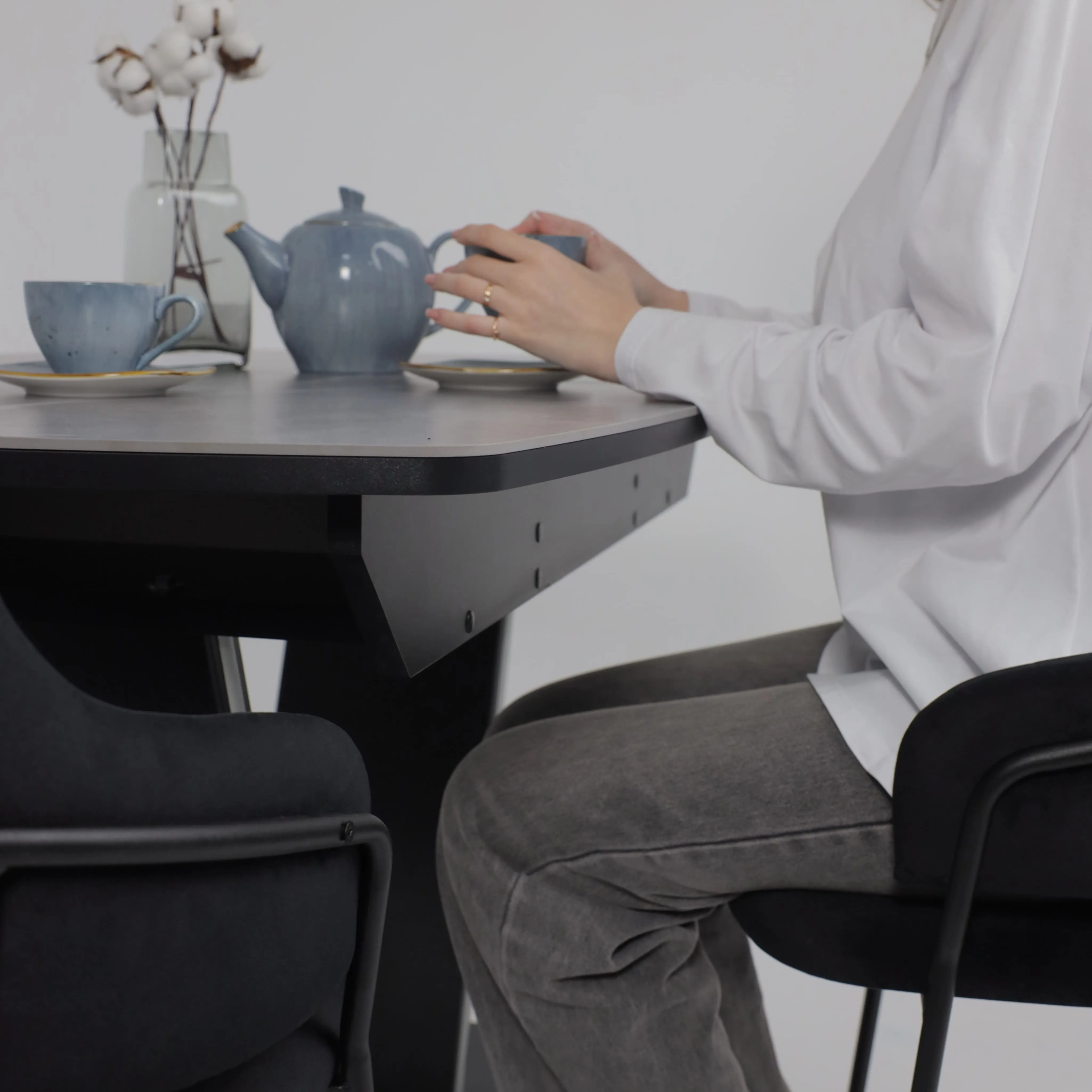 Стол TIRK RADIAL-94, раздвижной 94(126)х64, Дымчатая керамика/Чёрный
