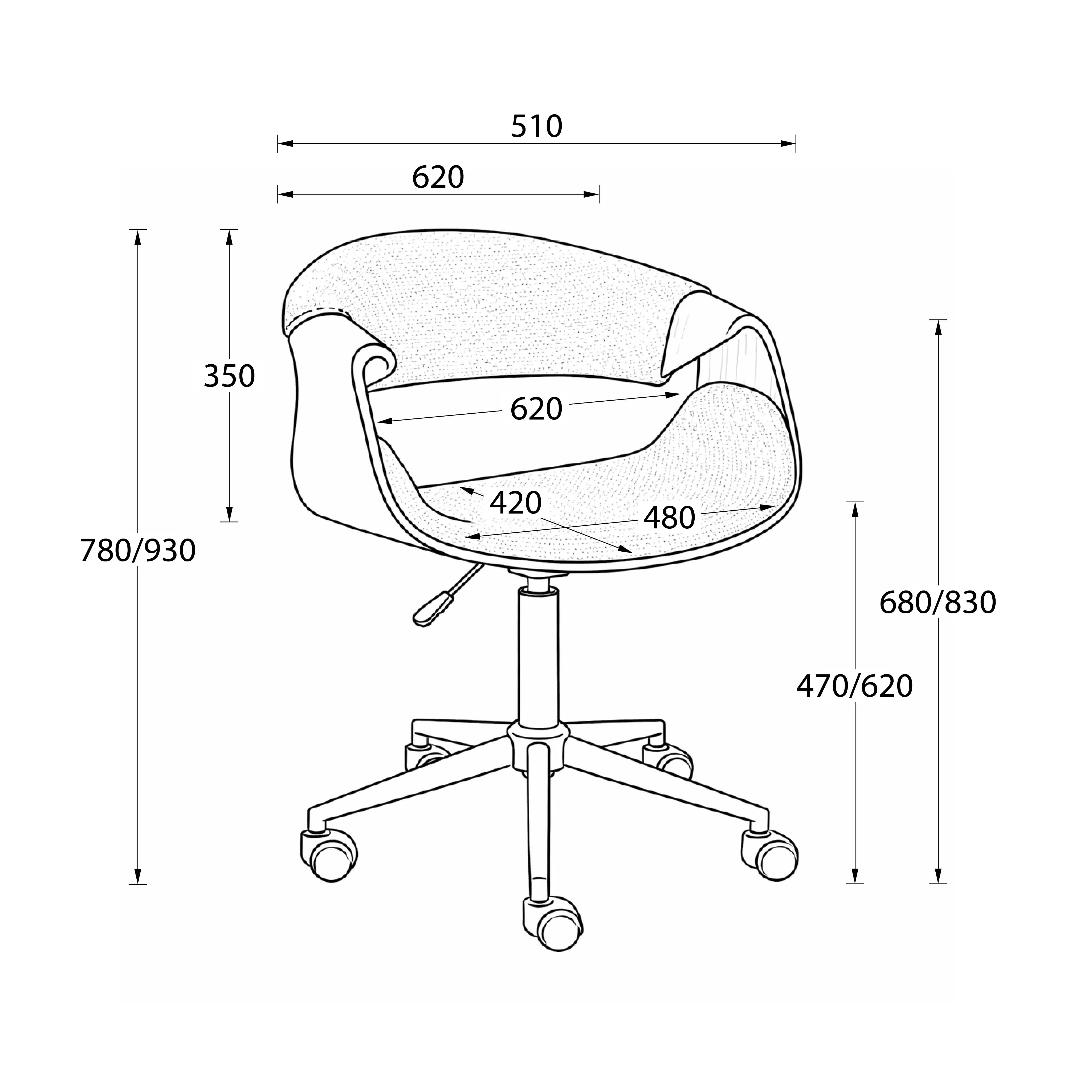 | Высота до подлокотника макс., мм | 830 |
