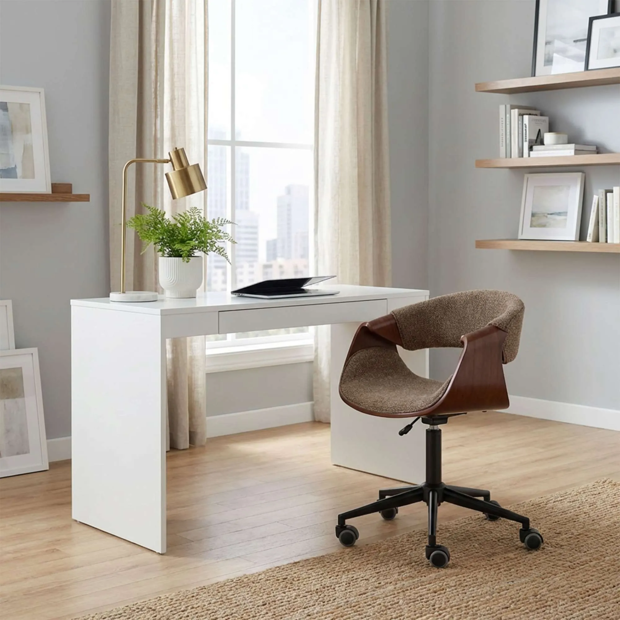 Кресло рабочее, поворотное RICCI NEW, white, ткань, черно-белая диор