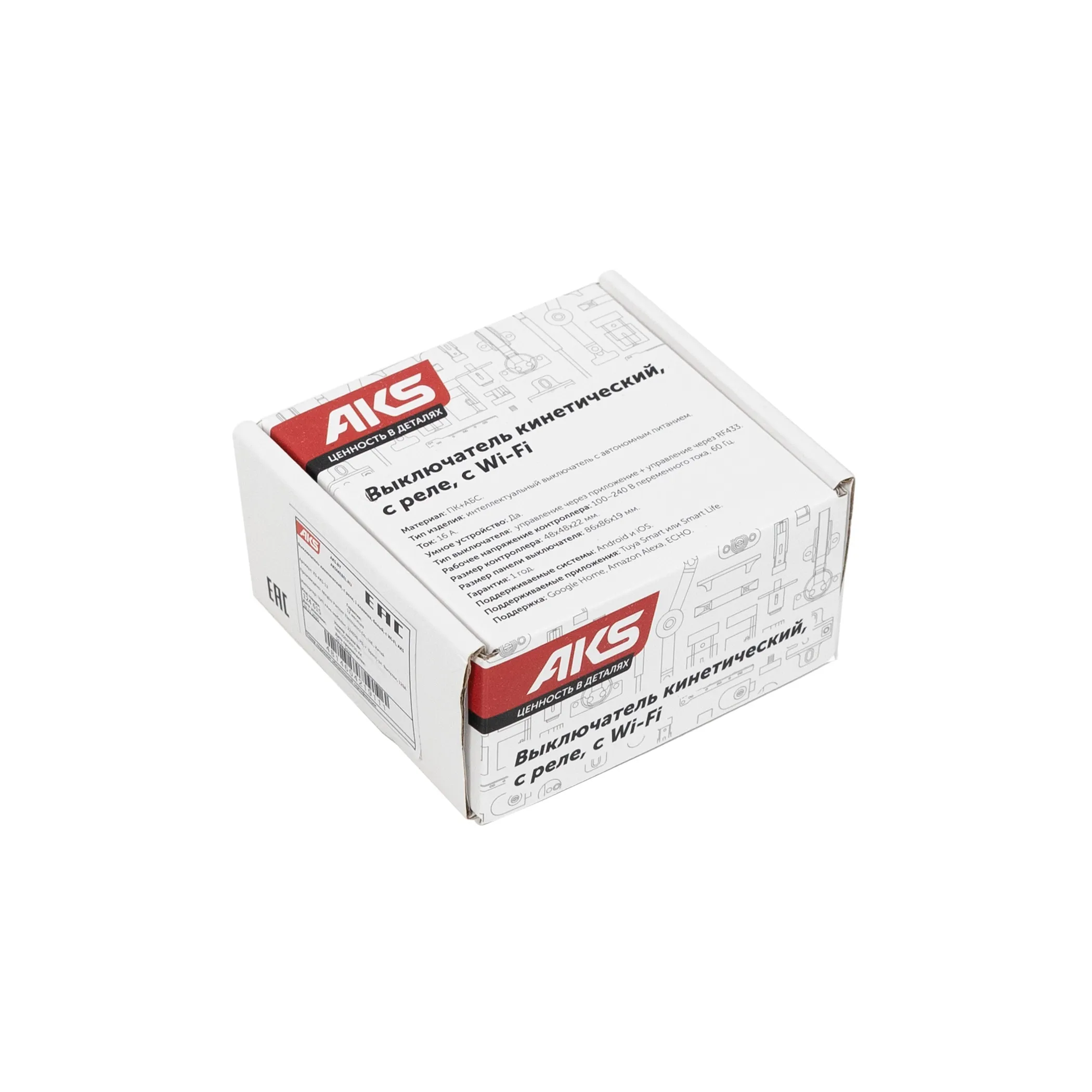 Выключатель кинетический, с реле, 2 клавиши, белый, с Wi-Fi, AKS