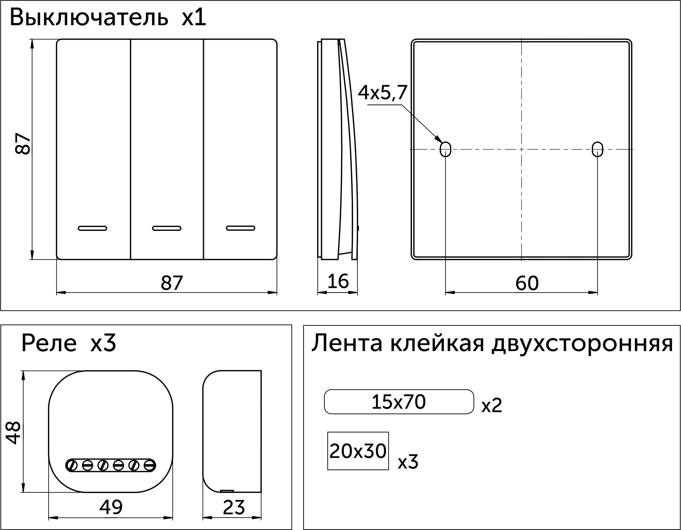 | Тип установки выключателей | накладной |