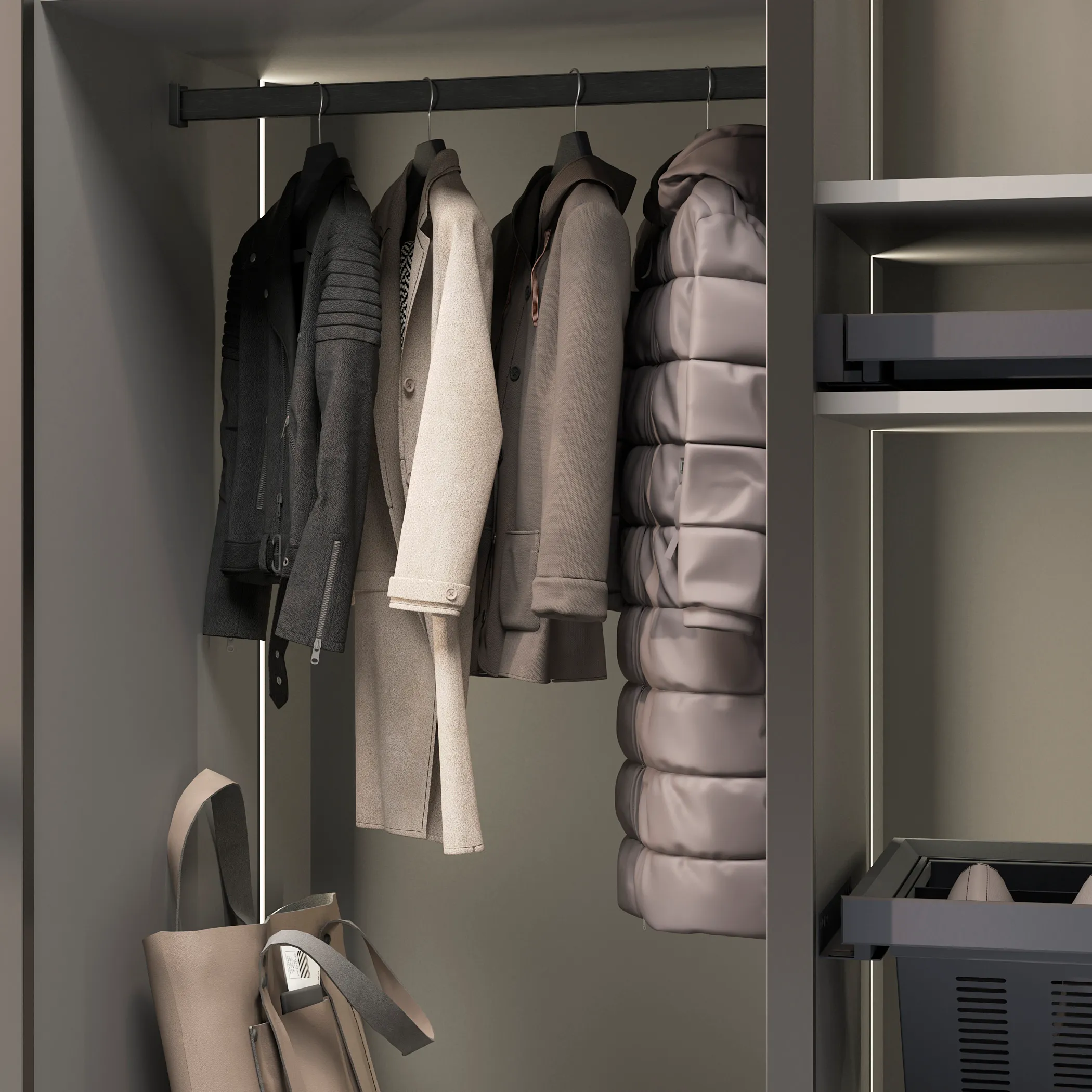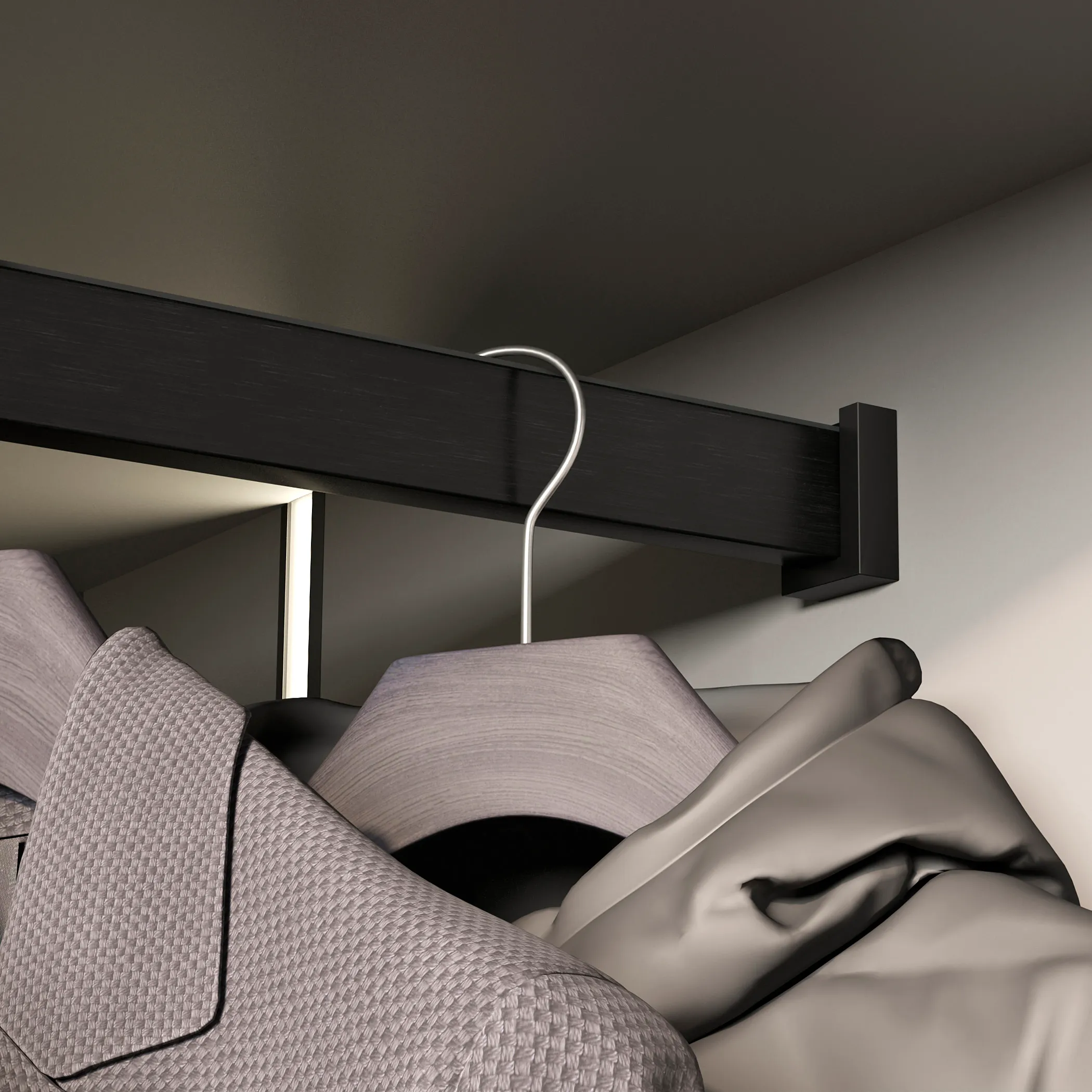 Наличие демпфера предотвращает шумное движение вешалок-плечиков и защищает штангу от царапин, толщина стенки 0,9 мм.