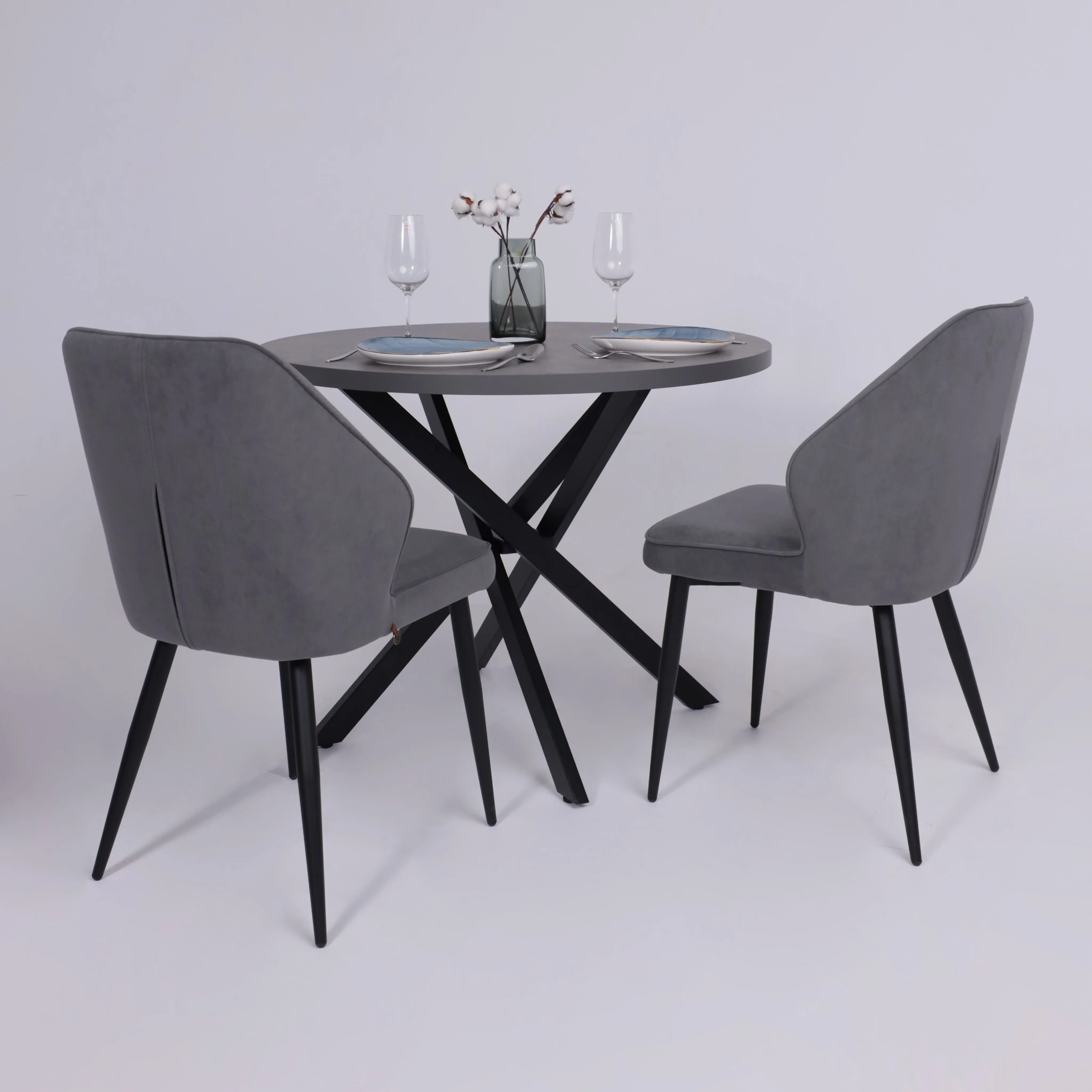 Стол TIRK RADIAL-94, раздвижной 94(126)х64, Дымчатая керамика/Чёрный