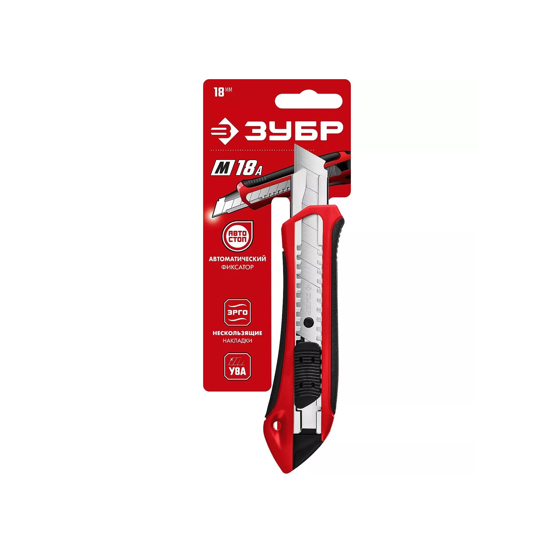 Нож с автостопом М-18А, сегментированные лезвия 18 мм МС ЗУБР