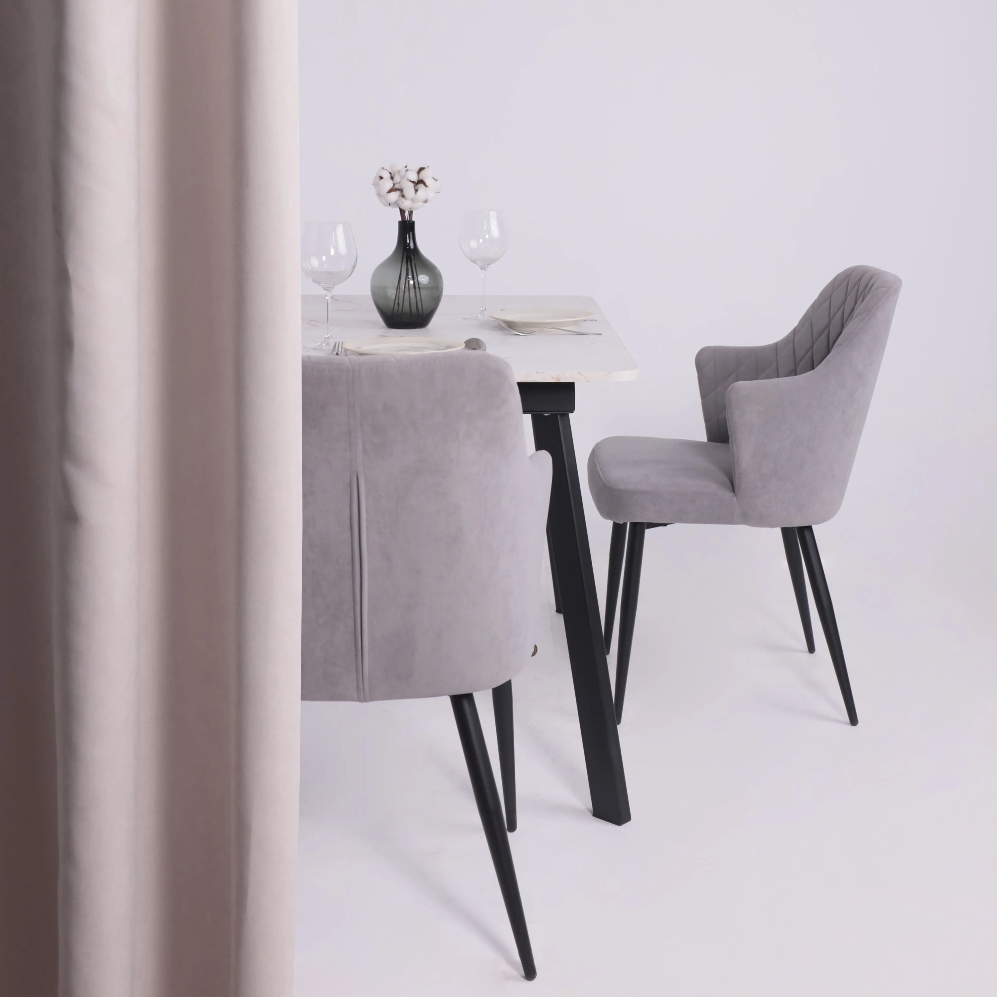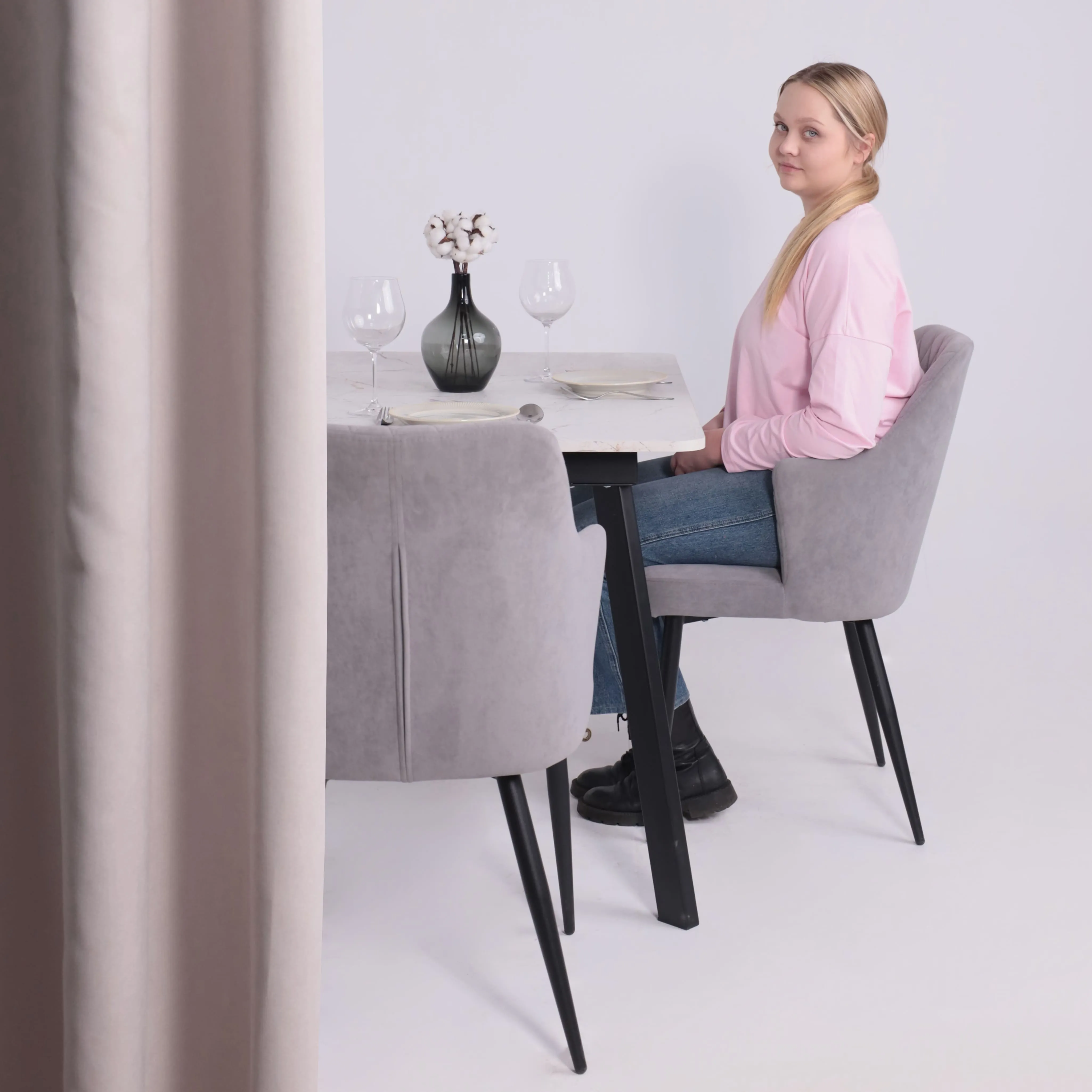 Стол TIRK RADIAL-94, раздвижной 94(126)х64, Дымчатая керамика/Чёрный