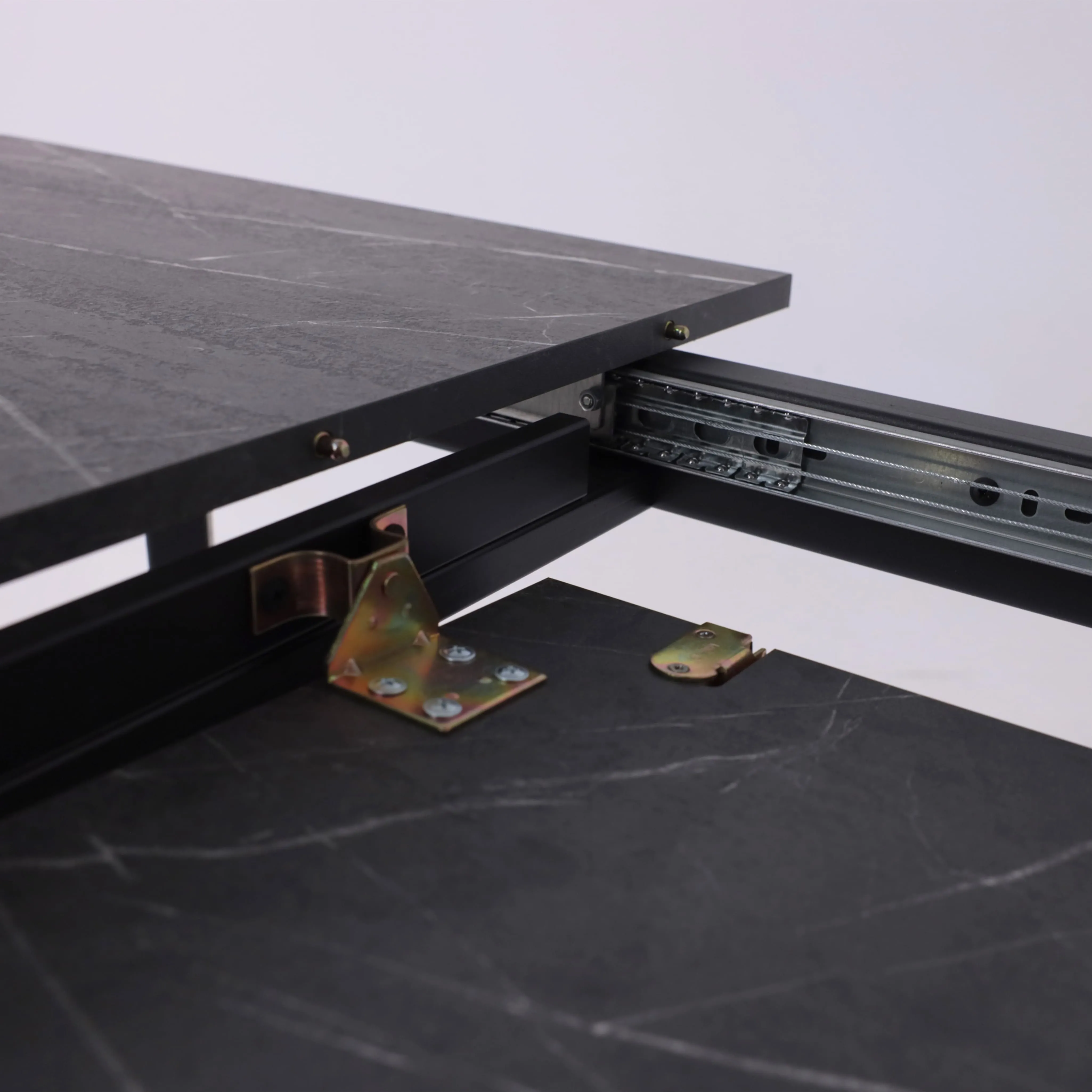 Стол AV 1209/1, ЛМДФ, раздвижной 1200(1600)*800 Мрамор Пьетра Графитовый/черный