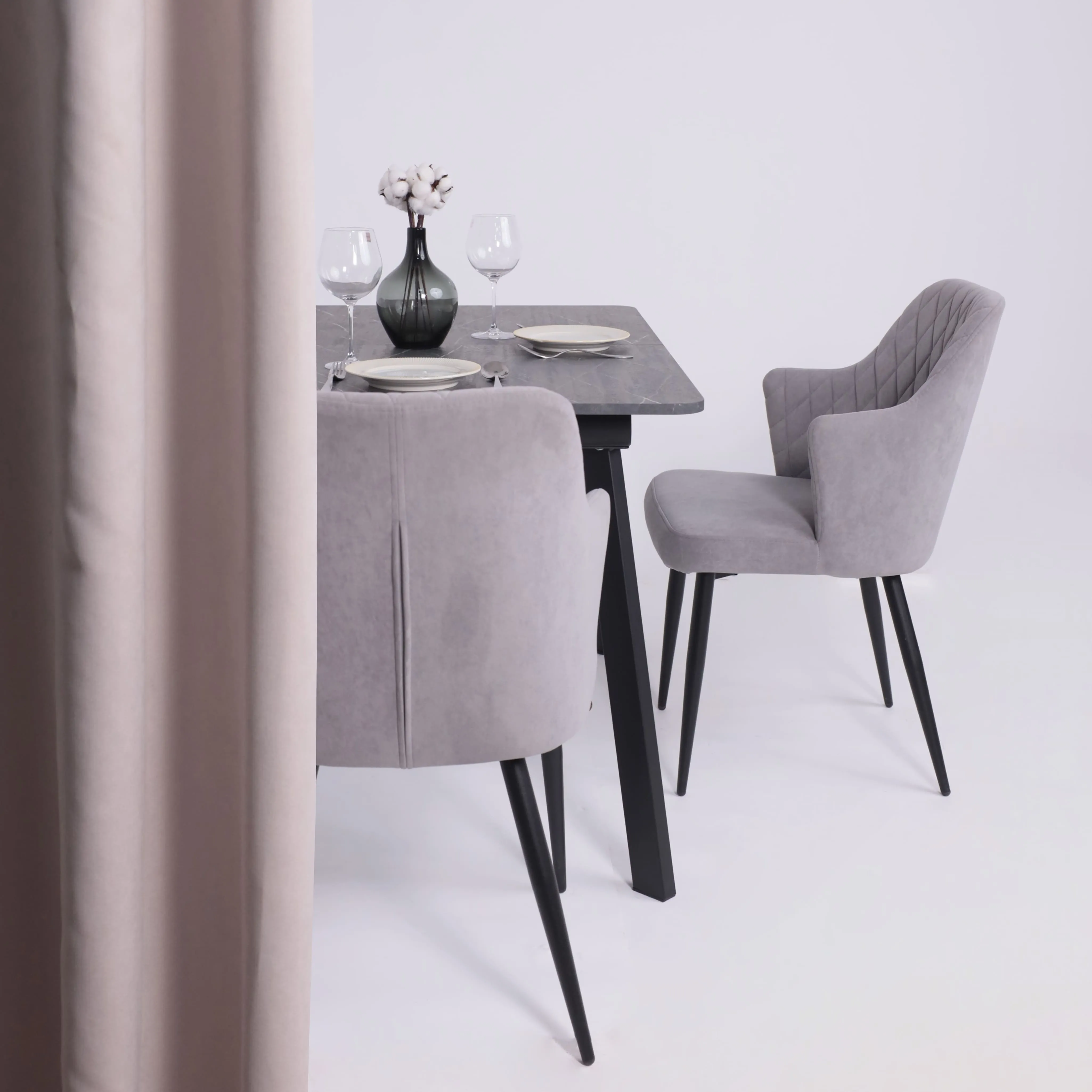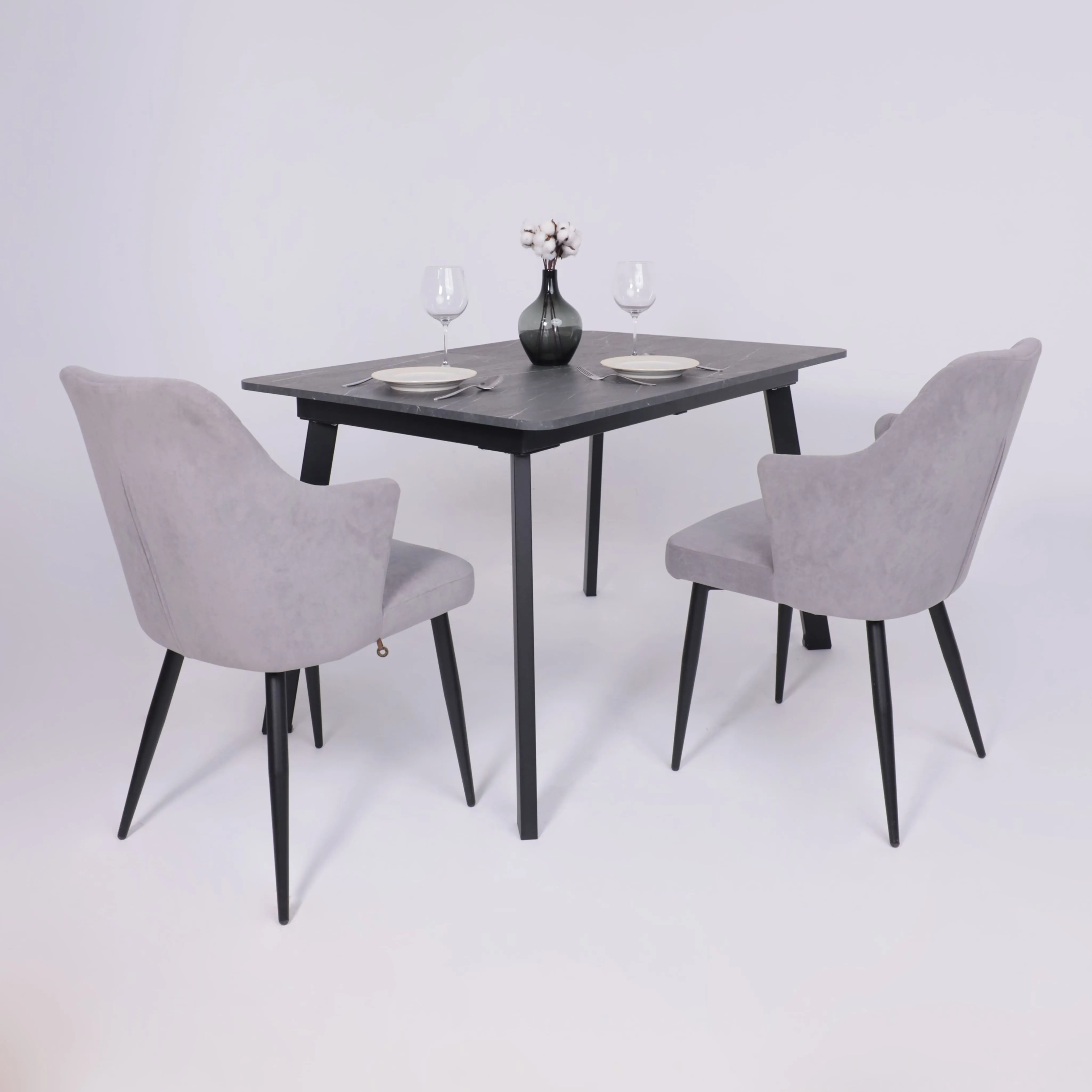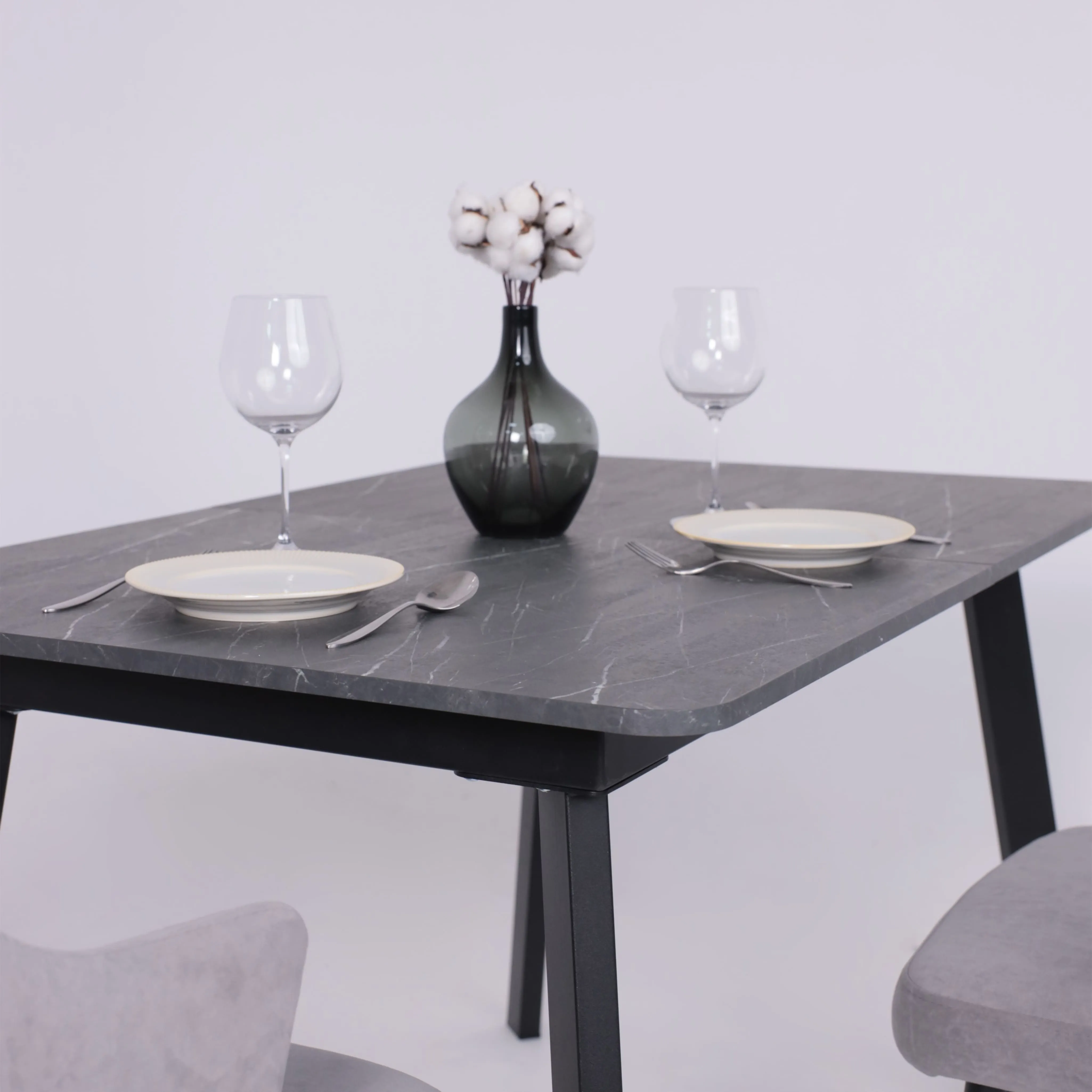 Стол TIRK RADIAL-94, раздвижной 94(126)х64, Дымчатая керамика/Чёрный
