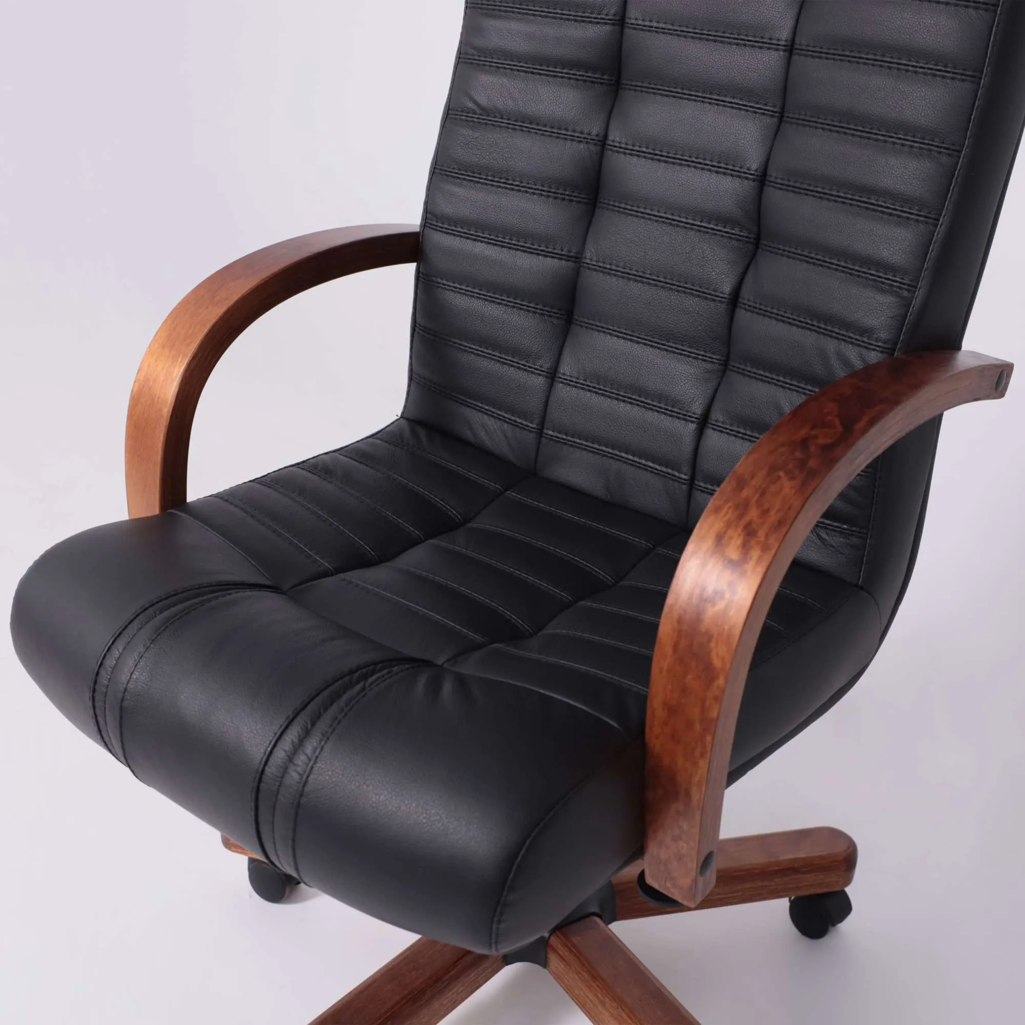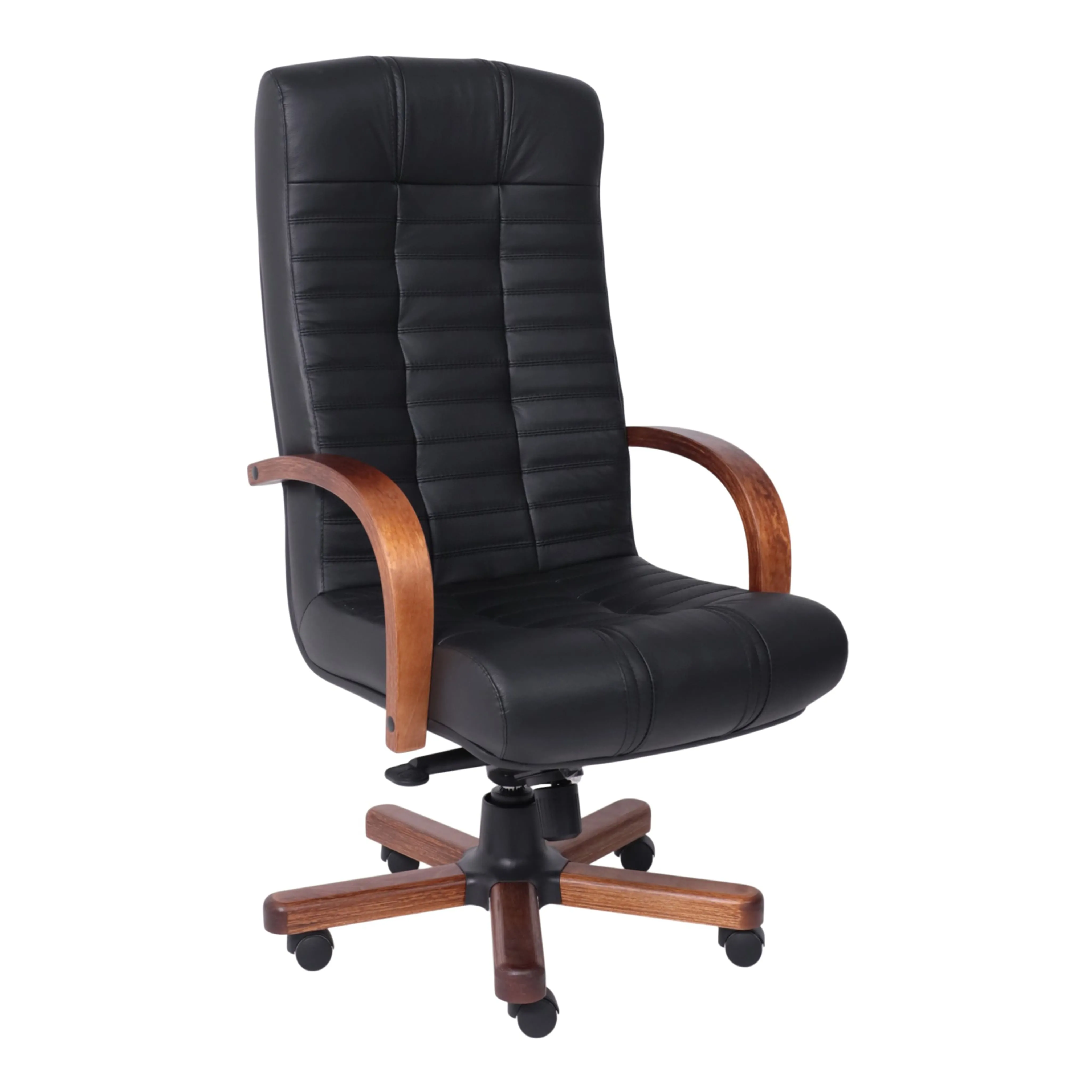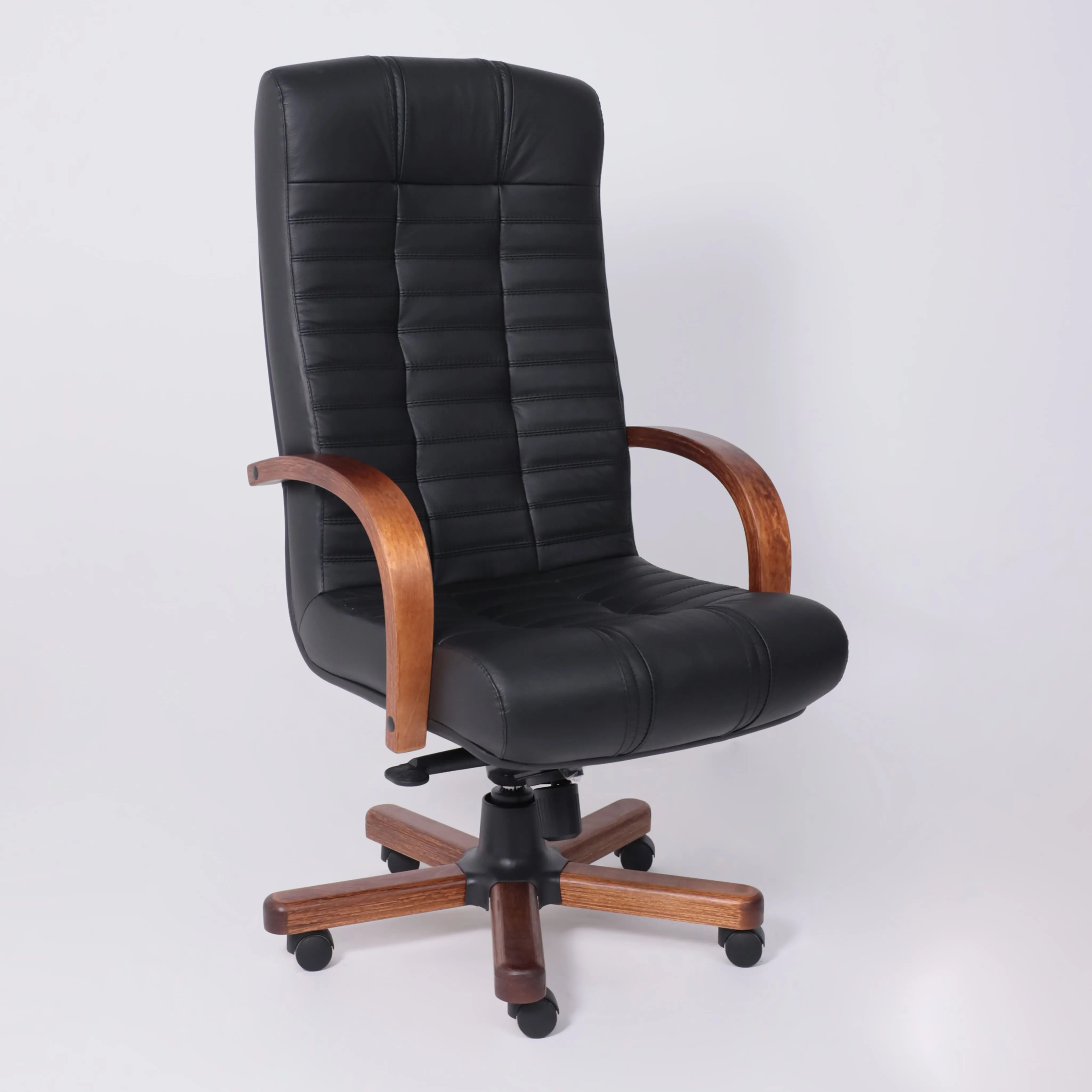 Кресло Атлант экстра (орех светлый) кожа (черная) мультиблок