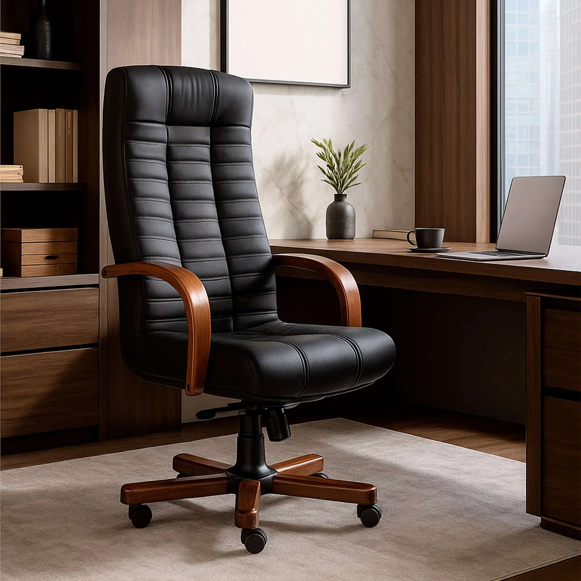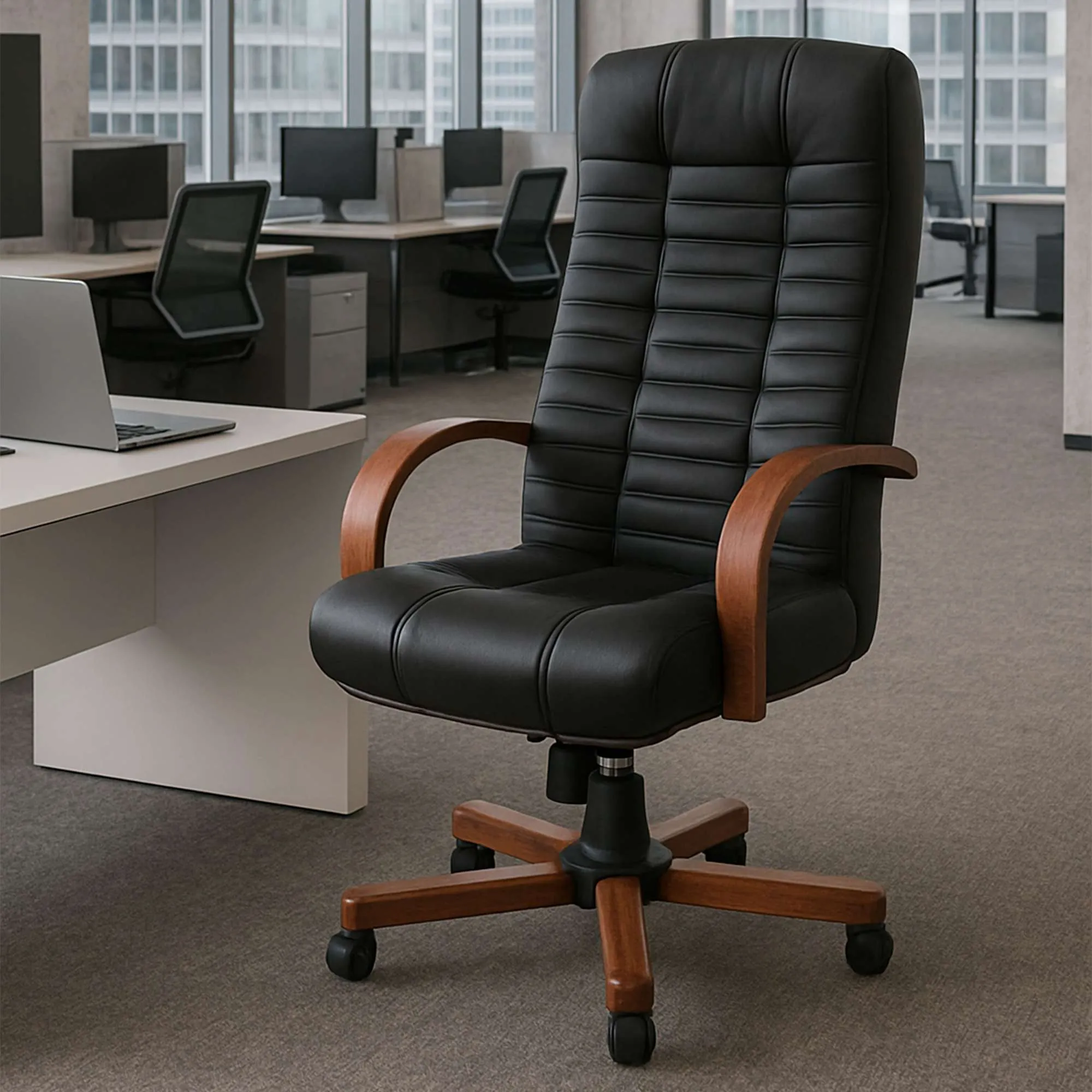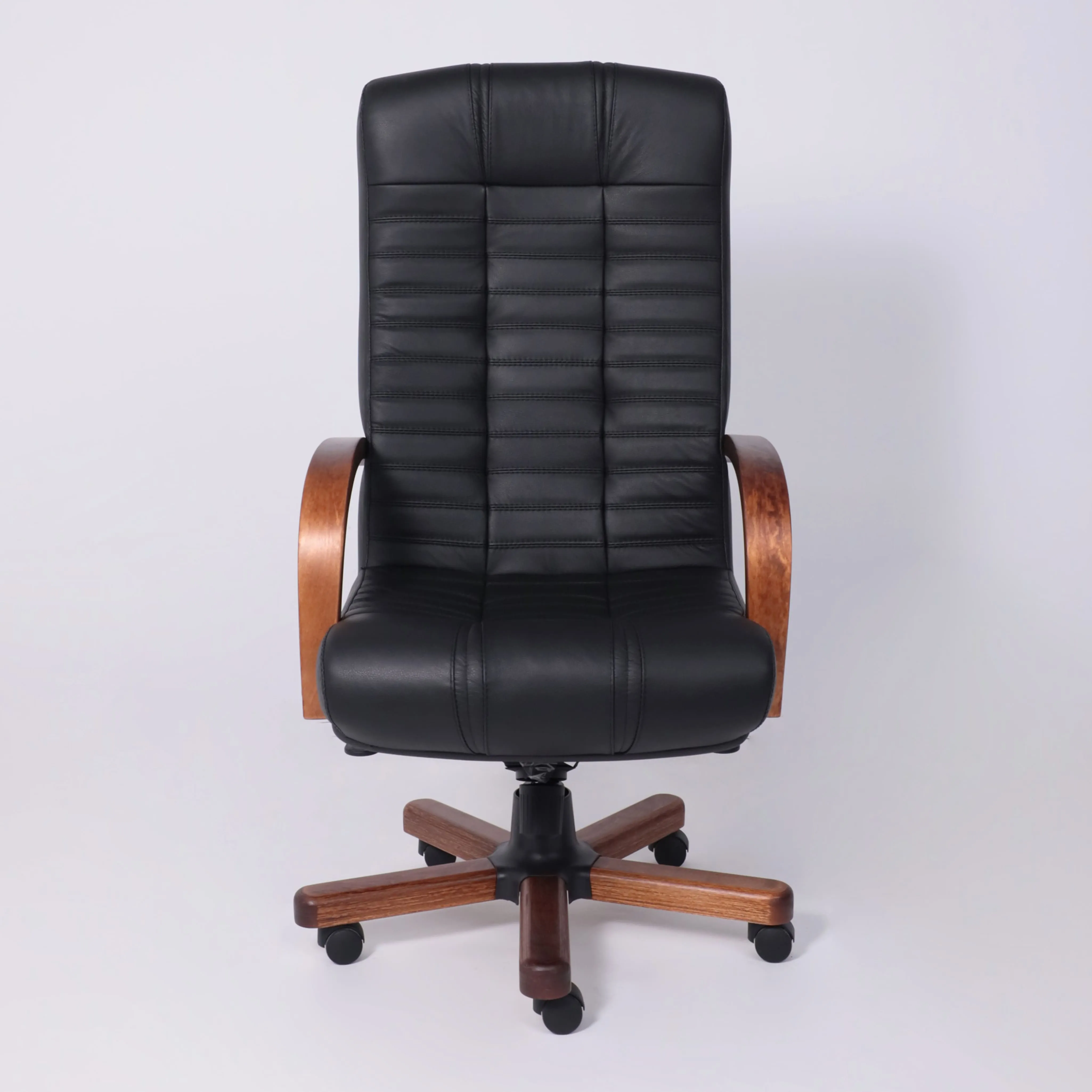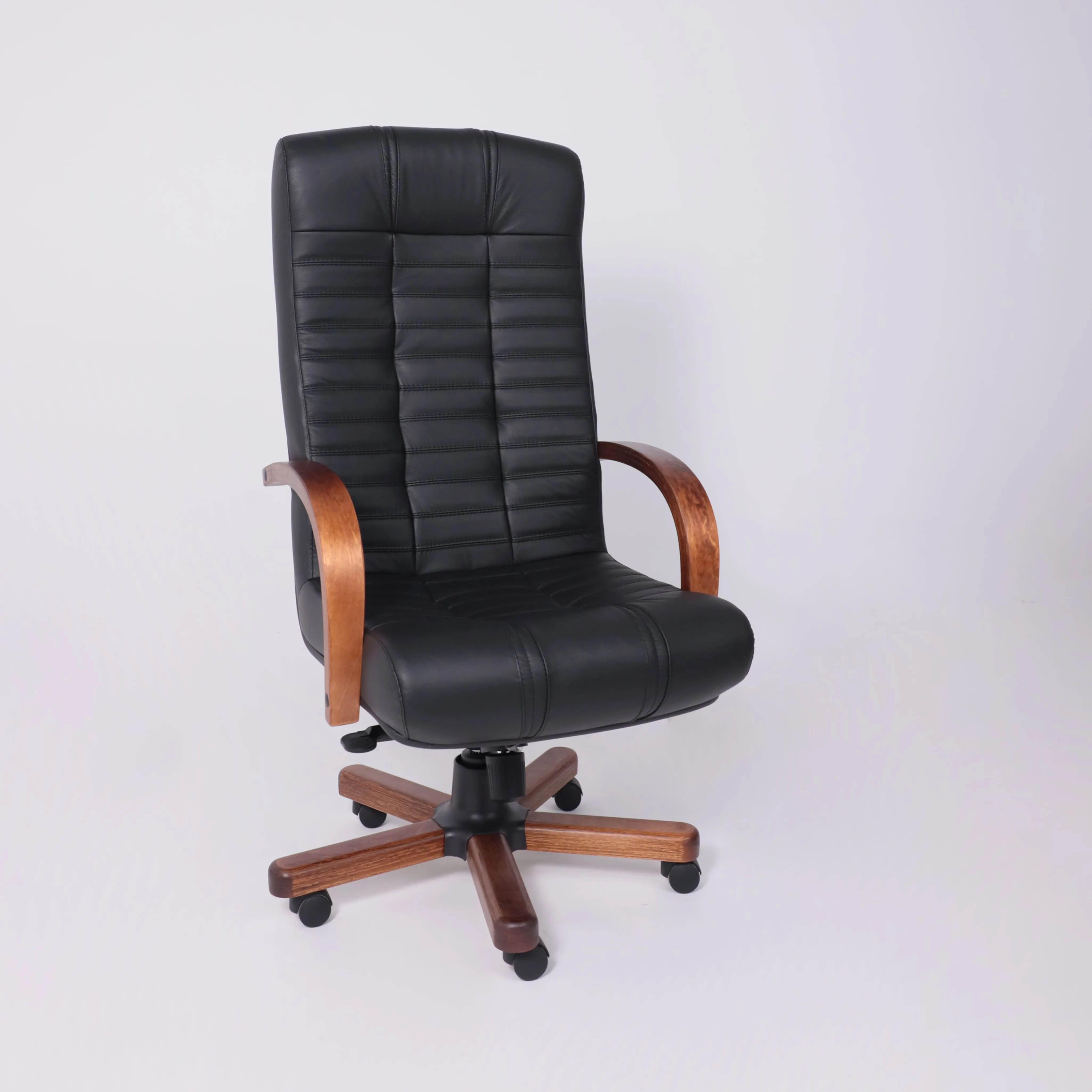 Кресло Атлант экстра (орех светлый) кожа (черная) мультиблок