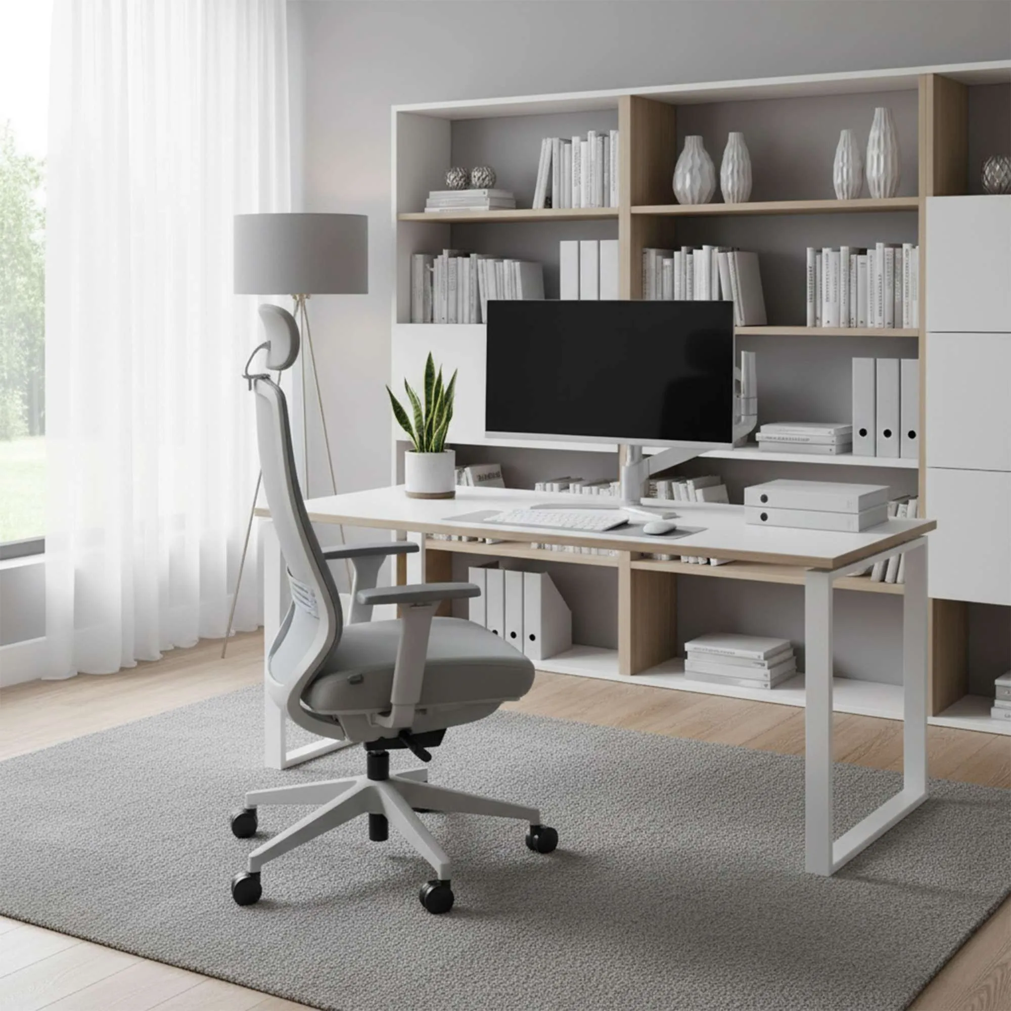 Кресло поворотное FENIX, серая сетка + ткань/серый полиамид