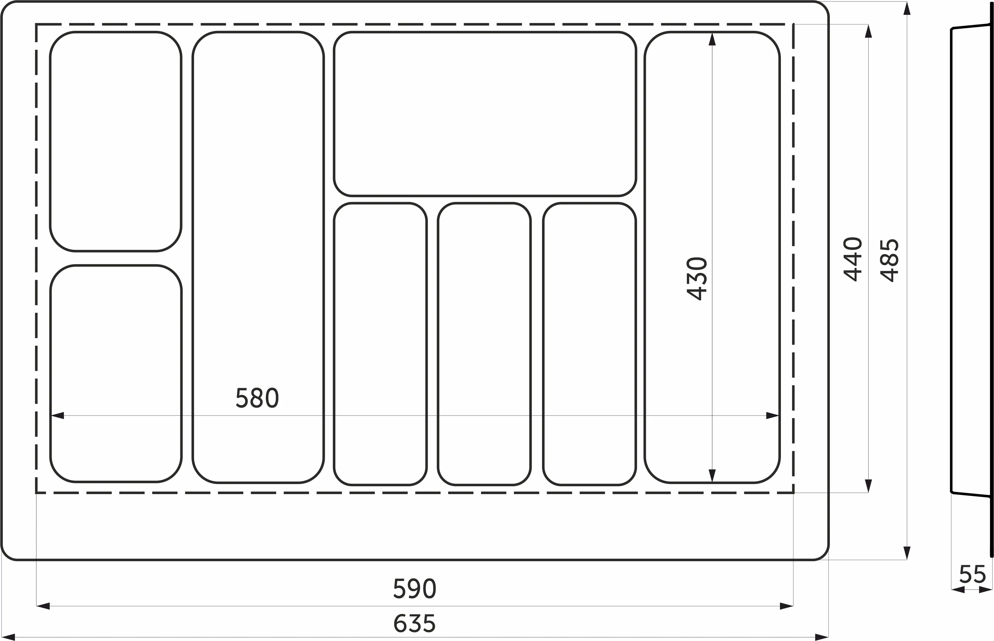 Вкладыш 60/550 шуфлядный металлический Organizer нержавеющая сталь (523*564*65) AKS