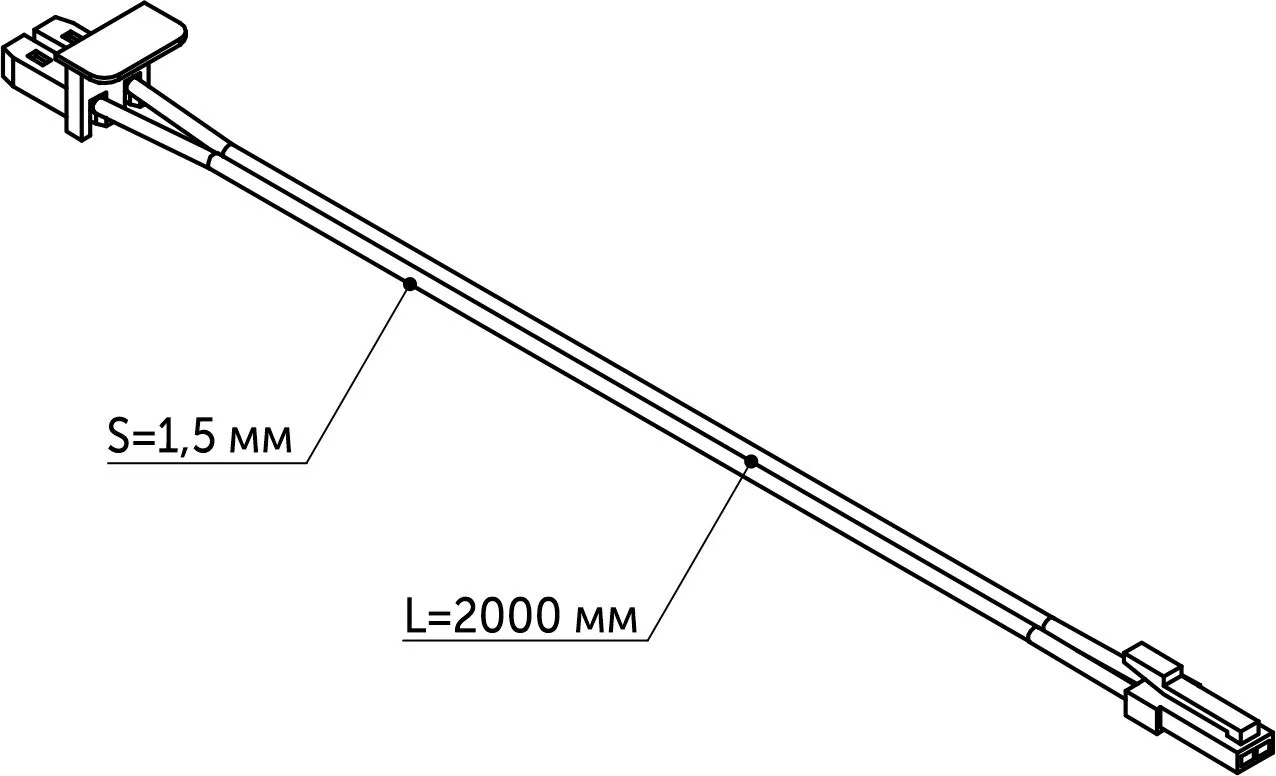 Шнур соединительный для светильника нарезного, длина 2 м. Предназначен для соединения светильника с источником питания.