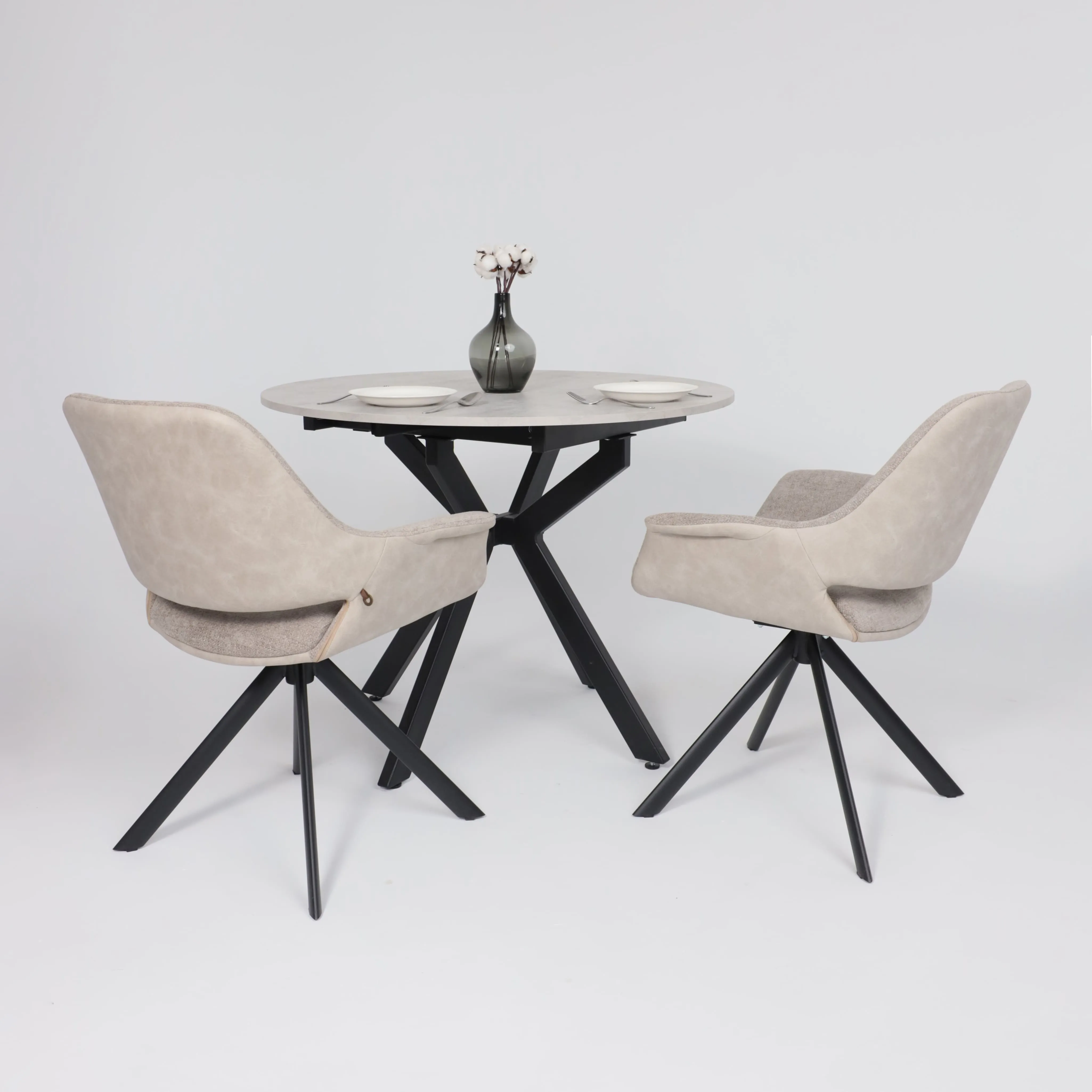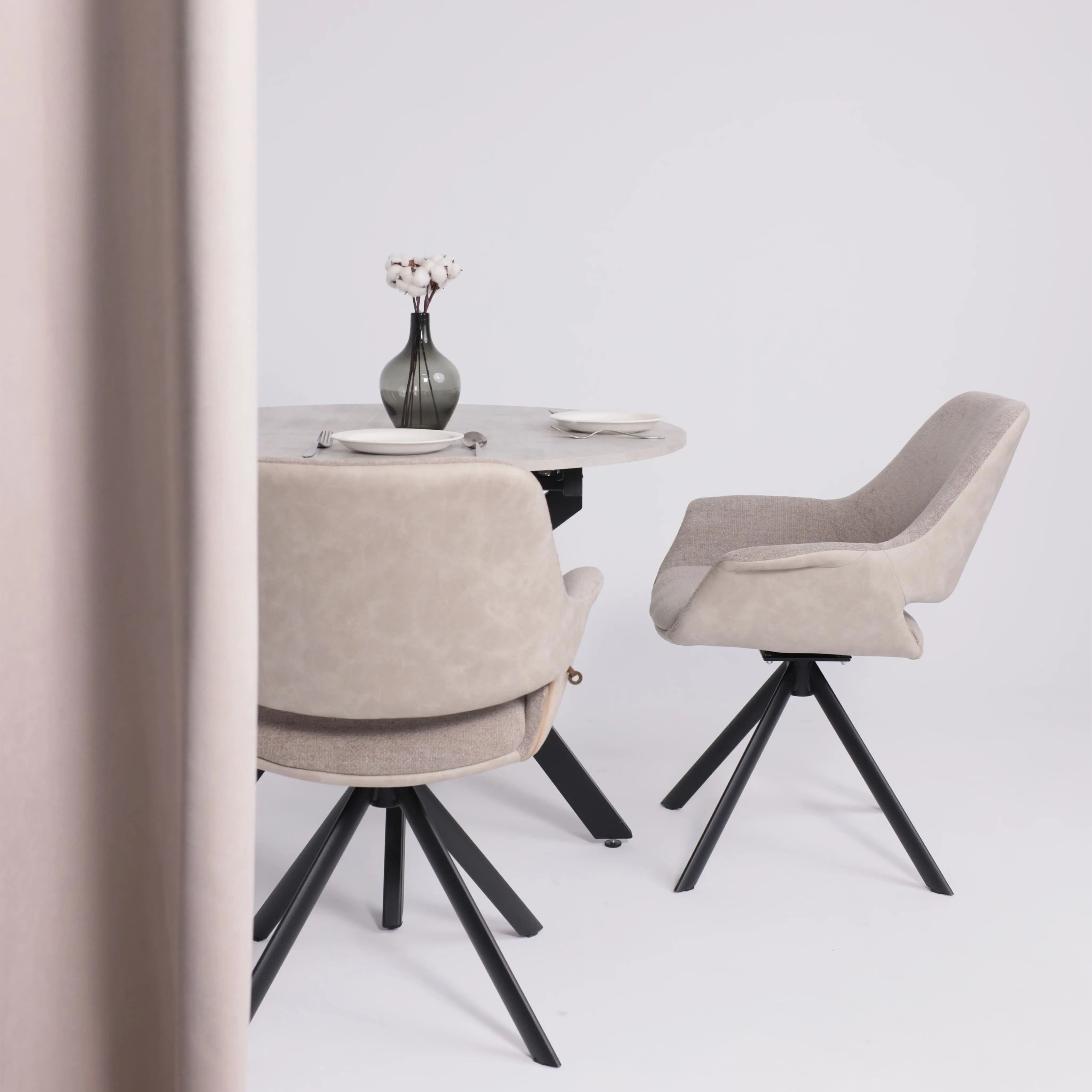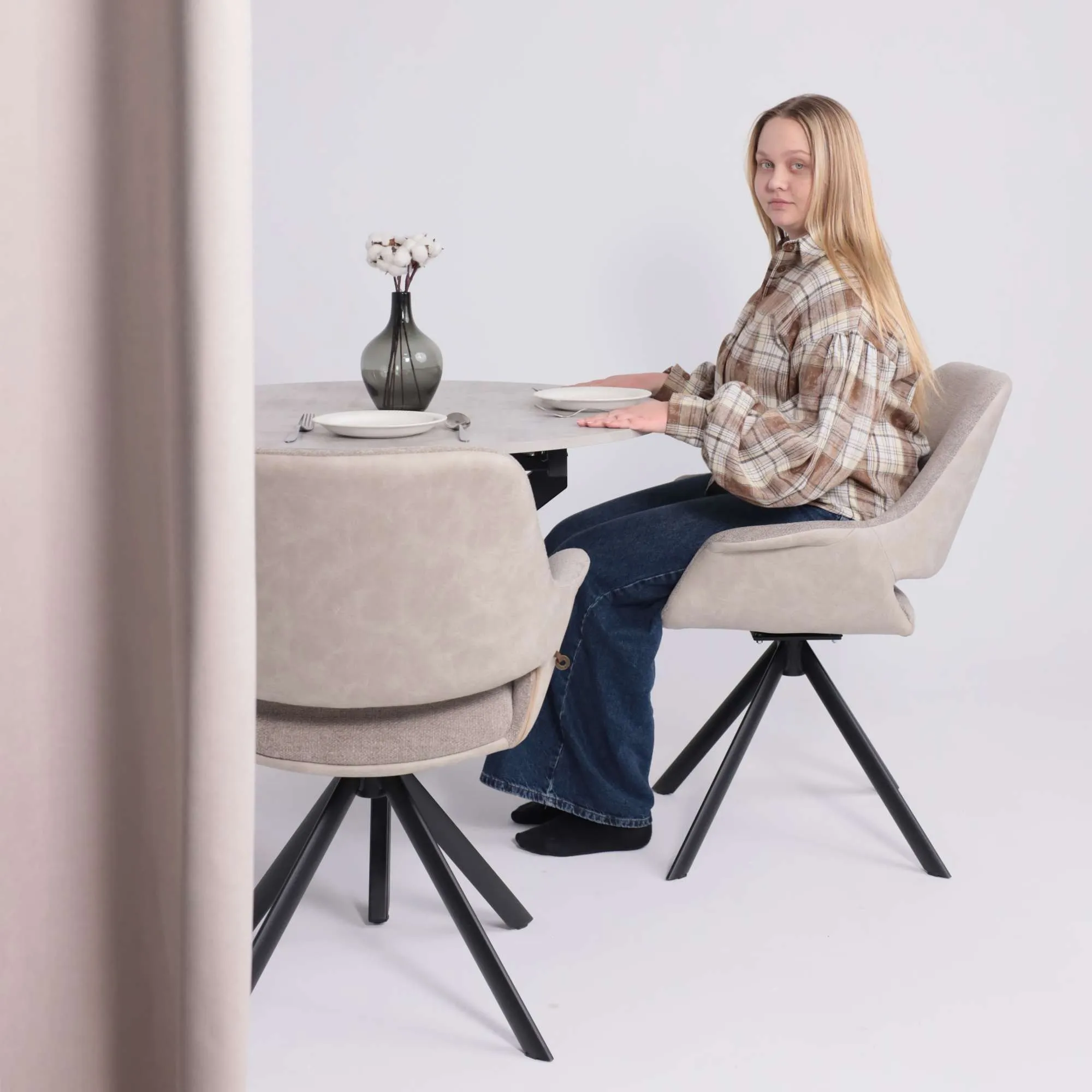 Стул OFFY-R 360, g05 GREY BEIGE шенилл LUX - Milk замша LUX\черный