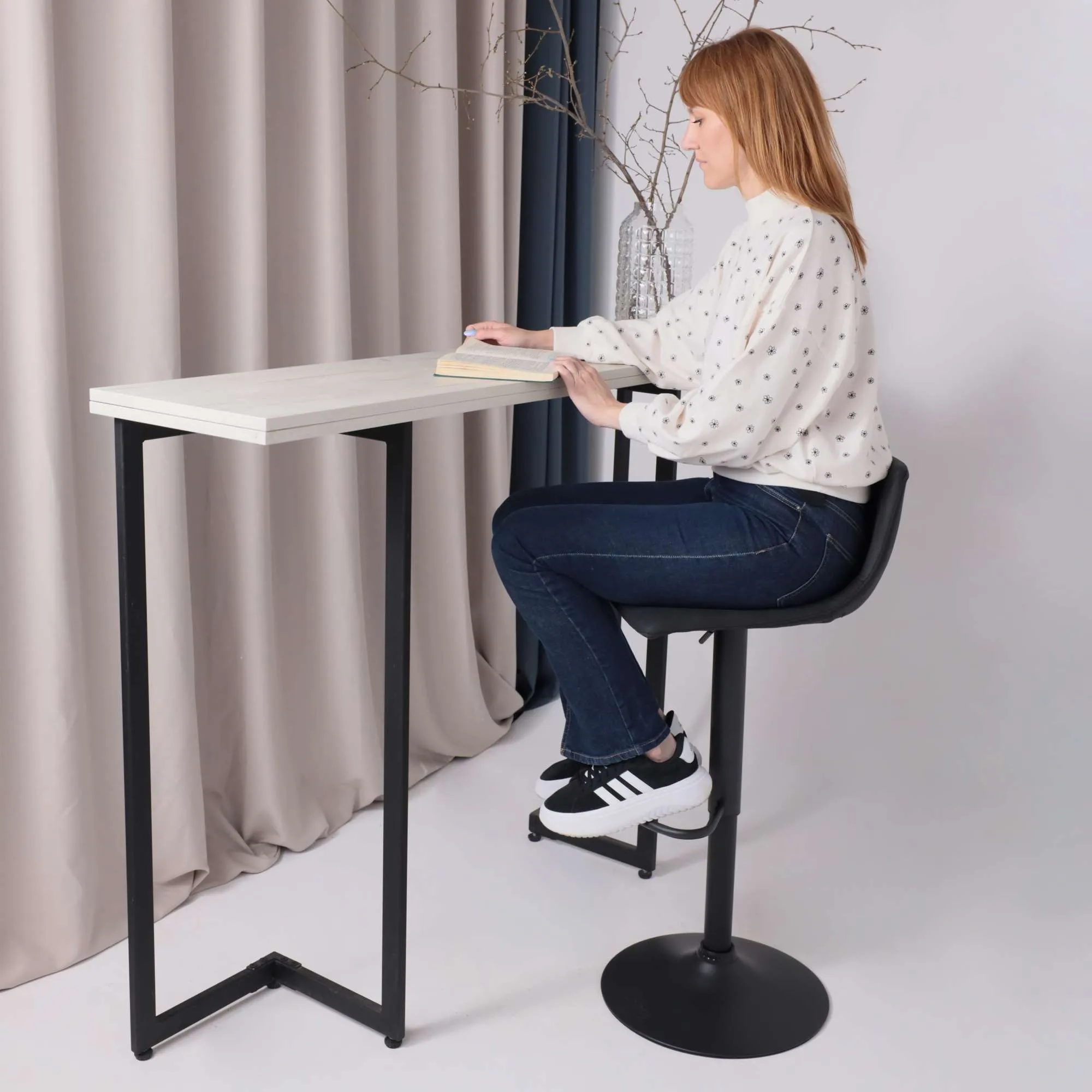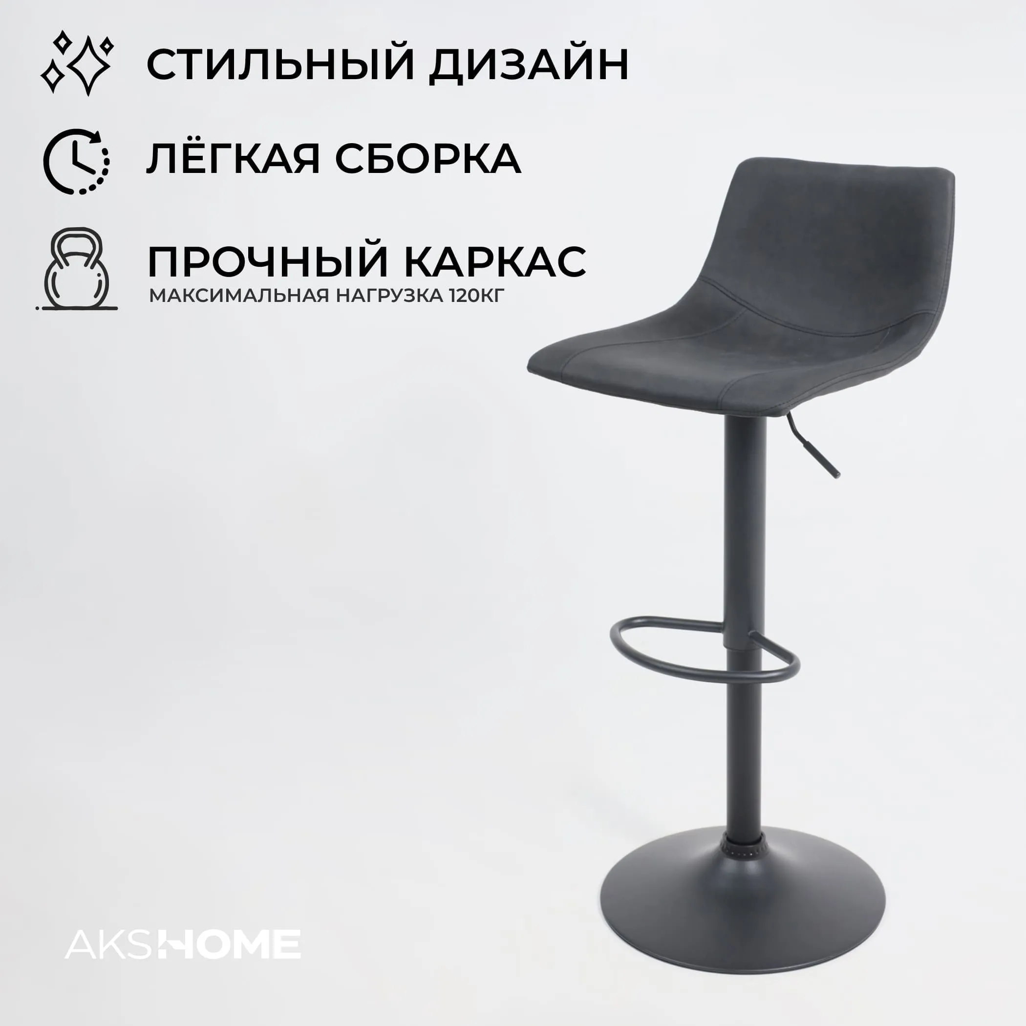 Современный барный стул изготовлен в стиле ЛОФТ. Удобная форма сидения обеспечивает комфорт, а металлическое основание на блине делает стул устойчивым. Для гостинной, кухни, бара или ресторана.