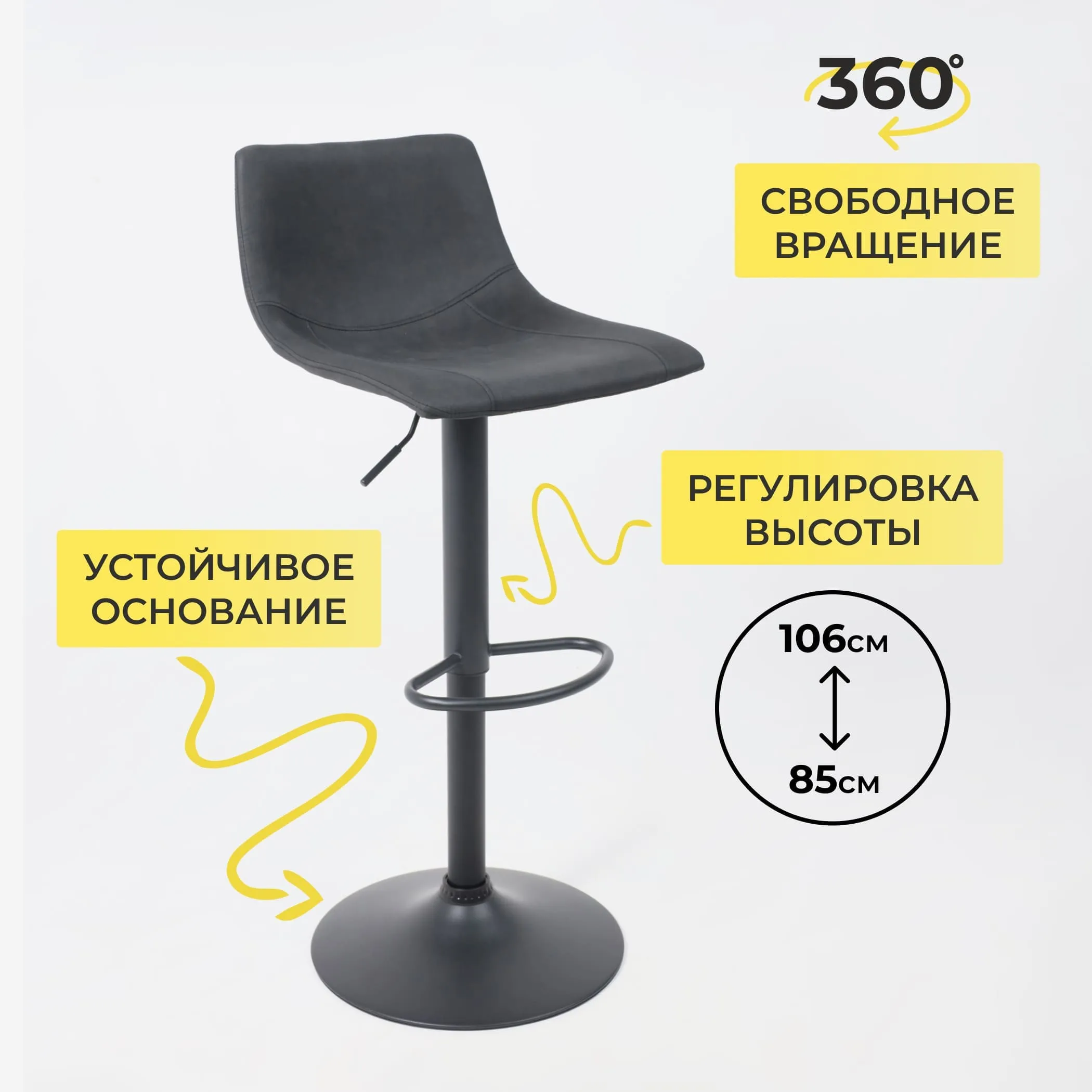 Стул барный BOB, темно-серый велюр HCJ-40/черный