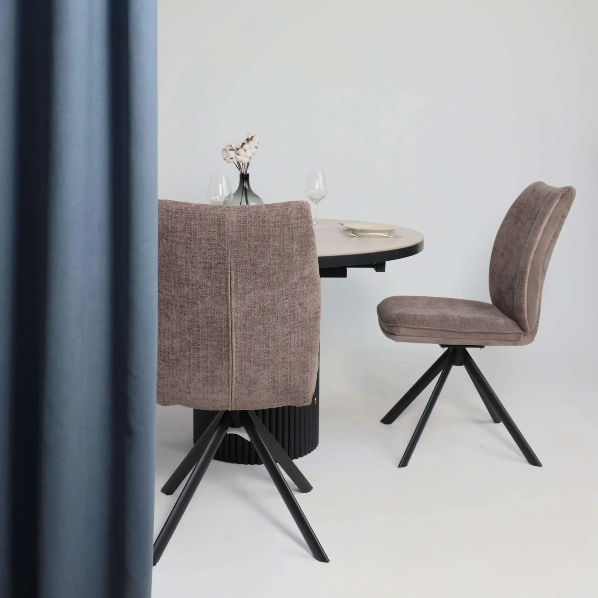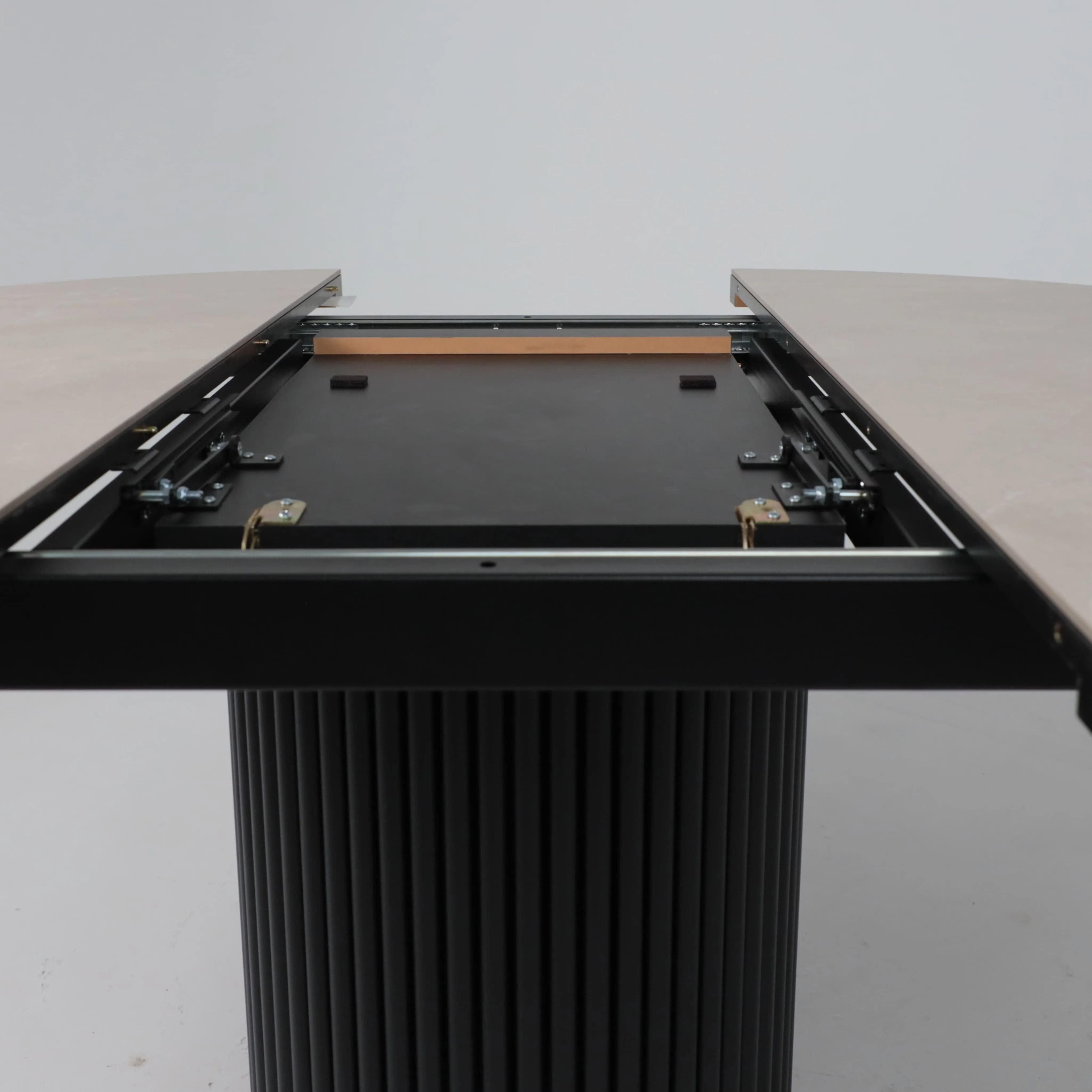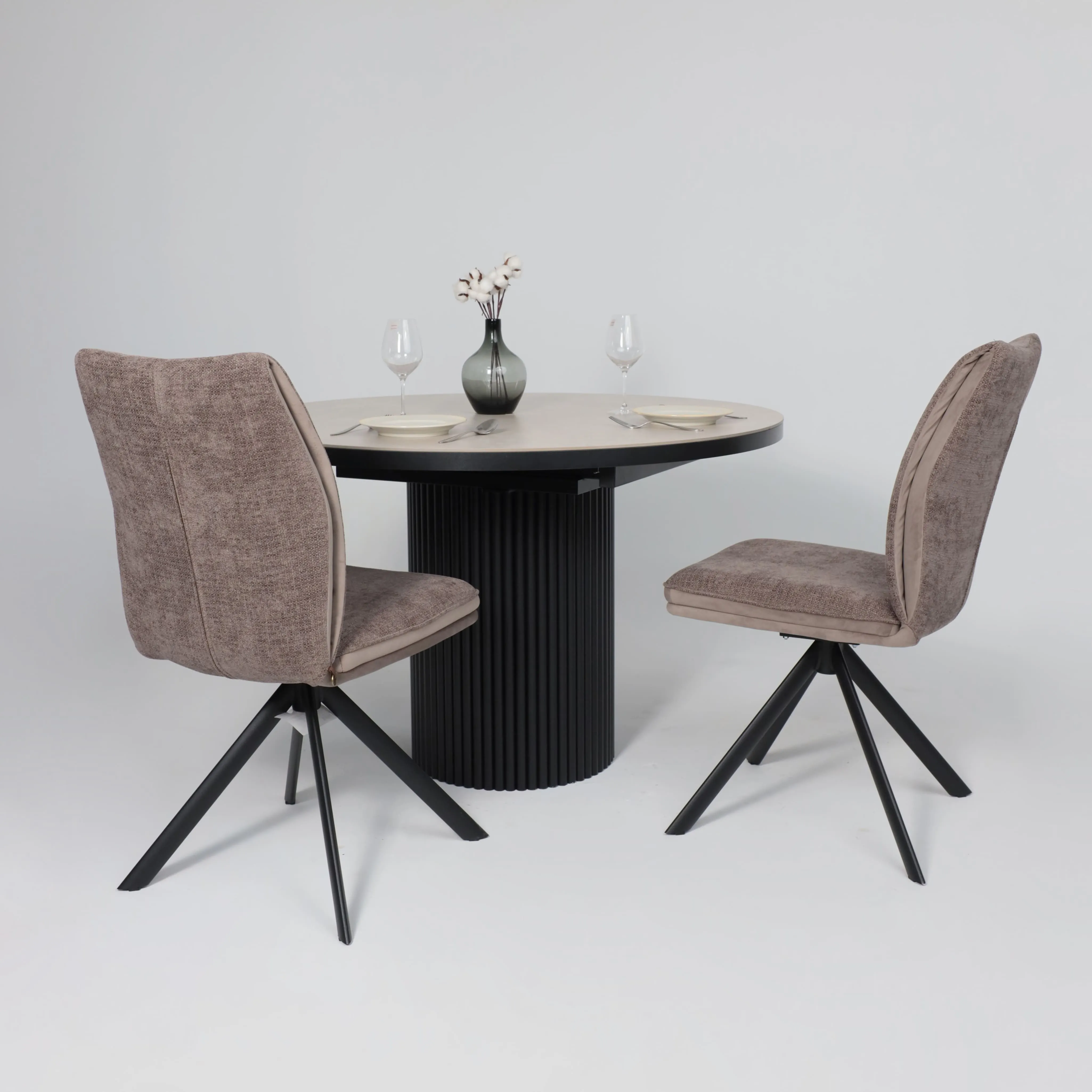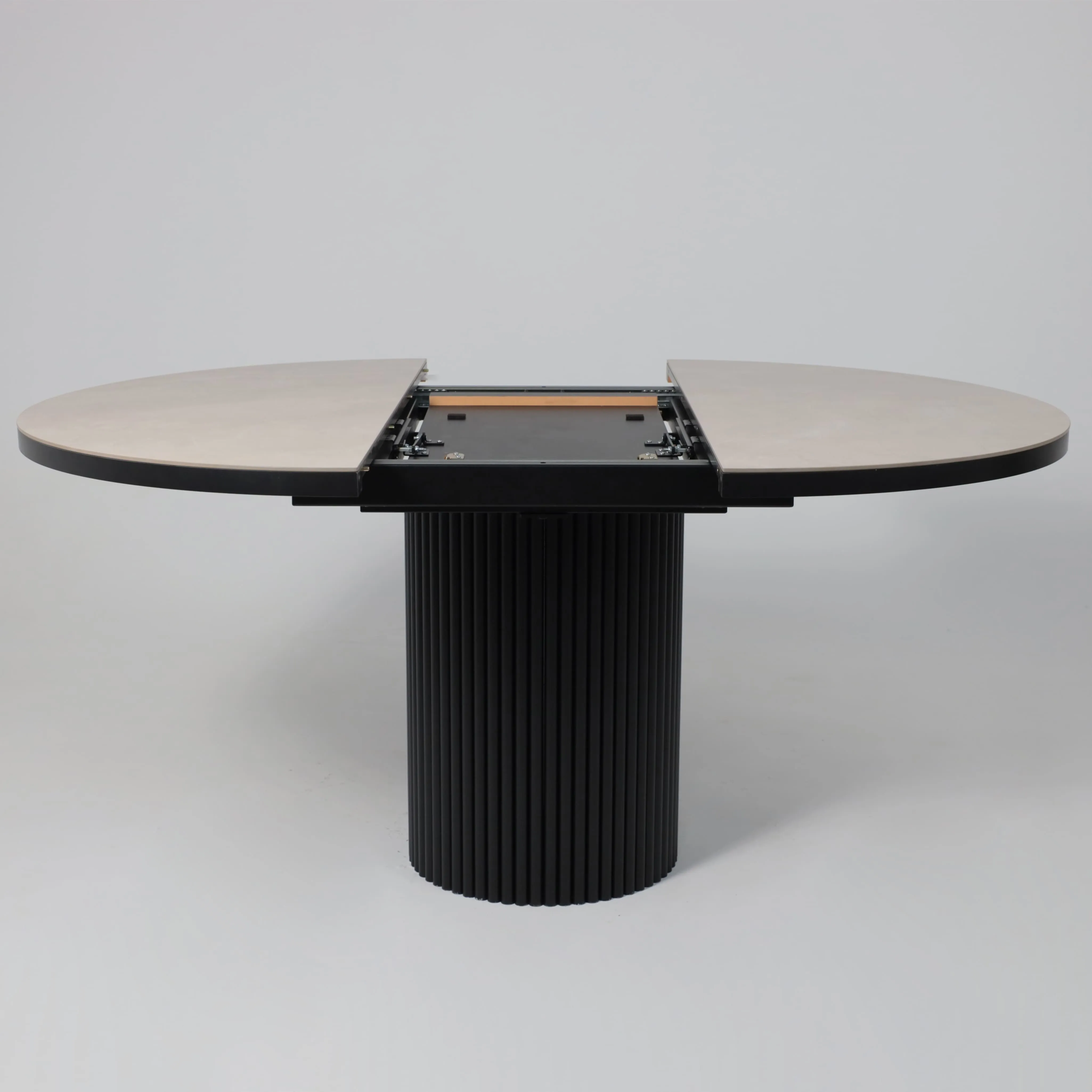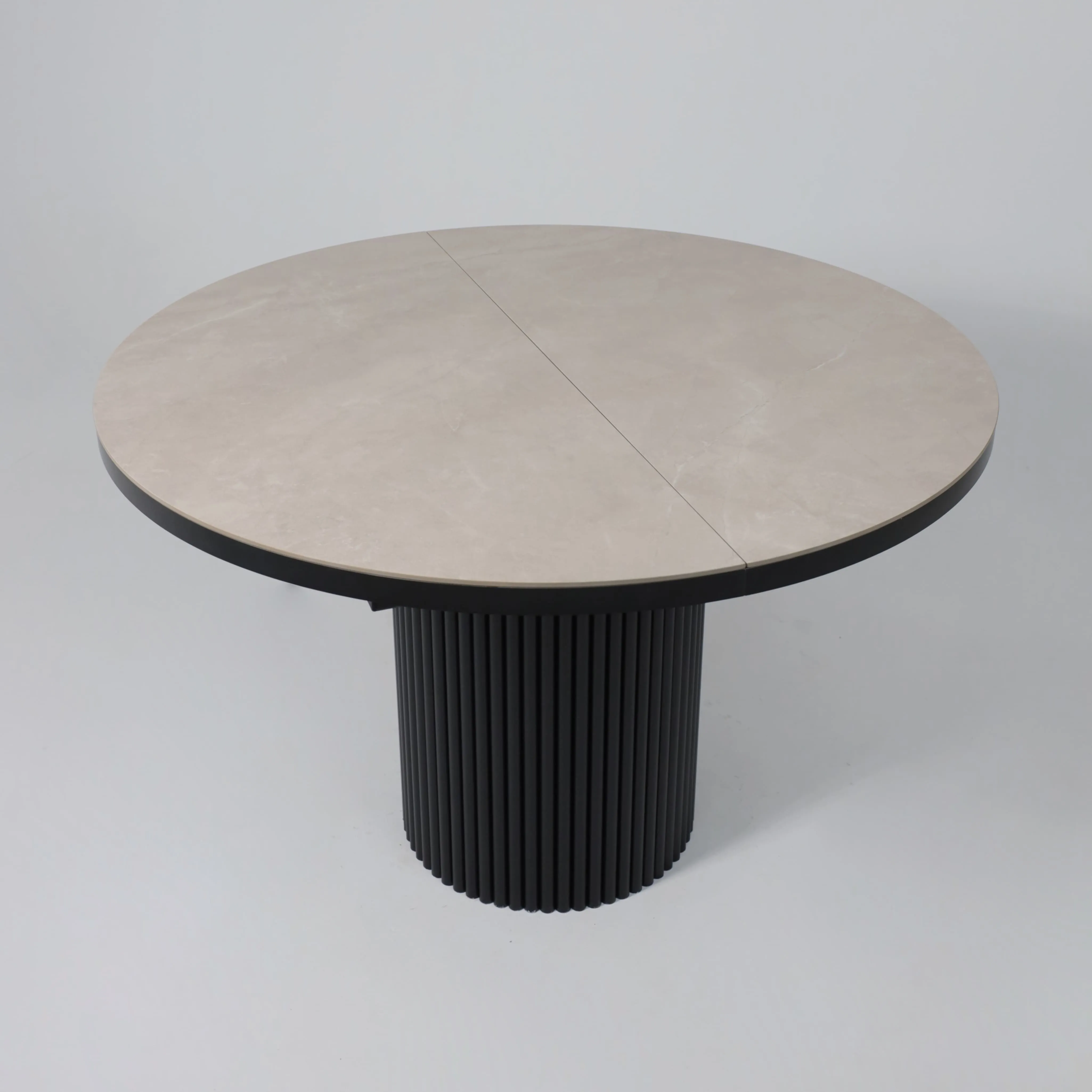 Стол ASKAR ROUND SLIDE-116, раздвижной круглый 116(156), BAYONA IVORY PREMIUM CER/Черный