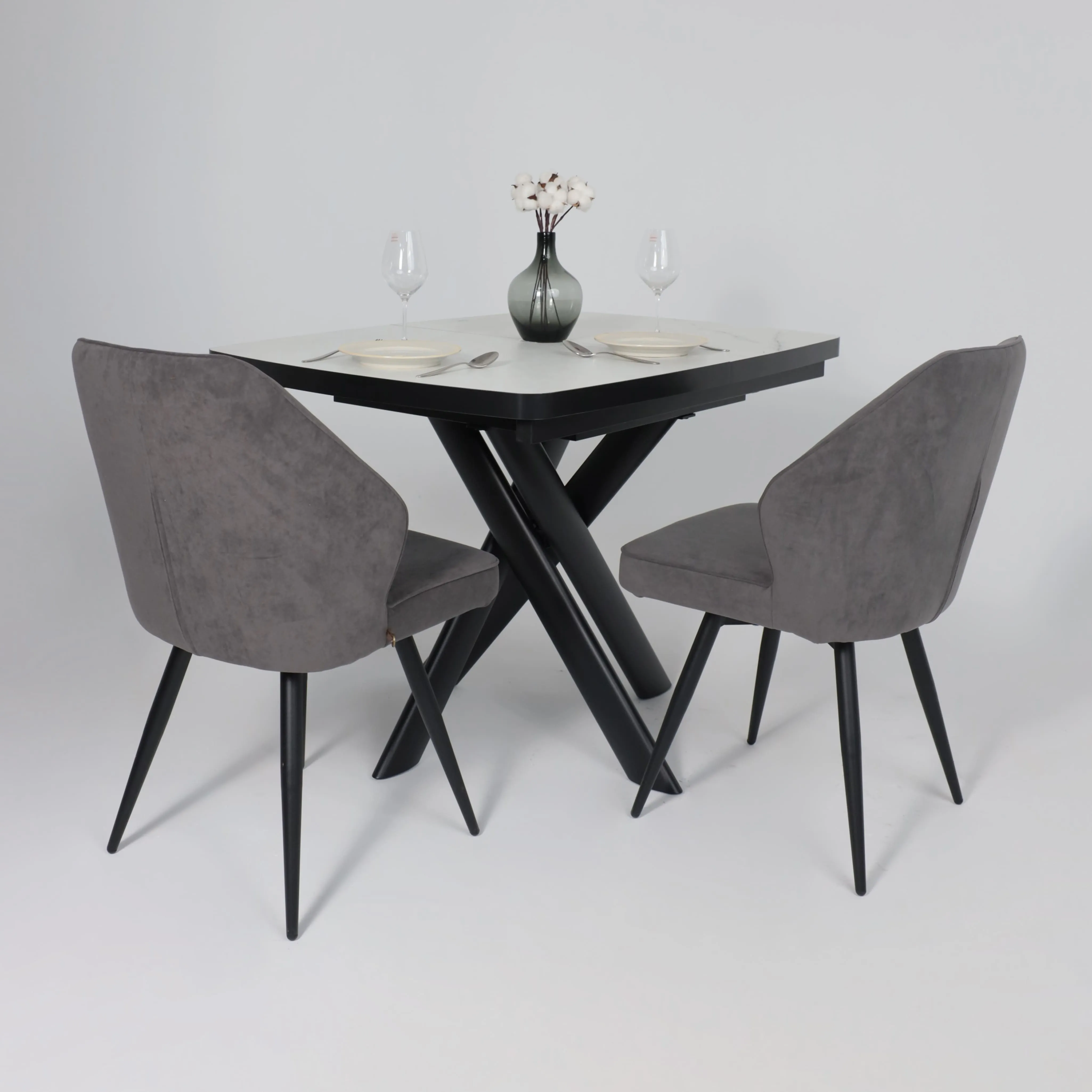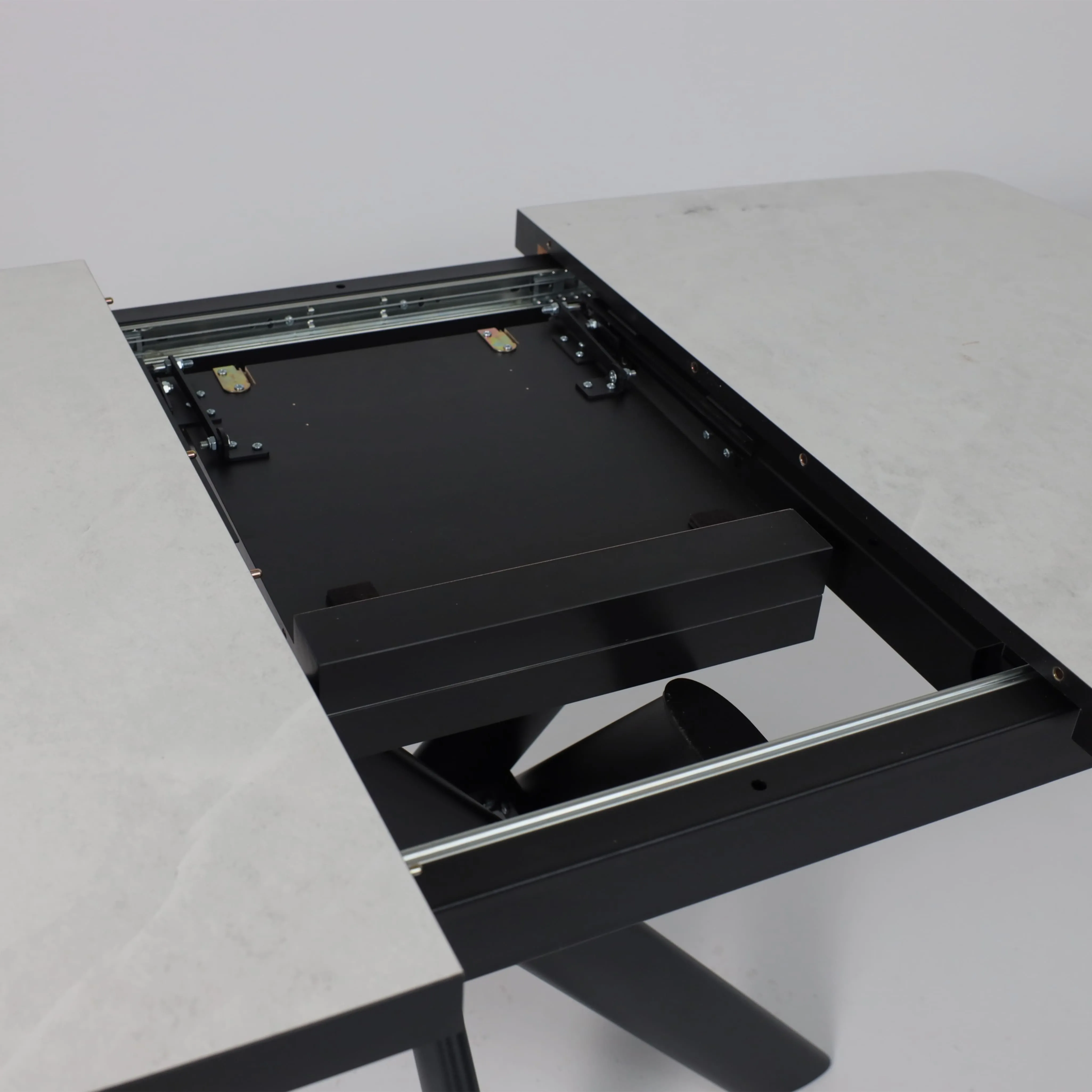 Стол TIRK RADIAL-94, раздвижной 94(126)х64, Дымчатая керамика/Чёрный