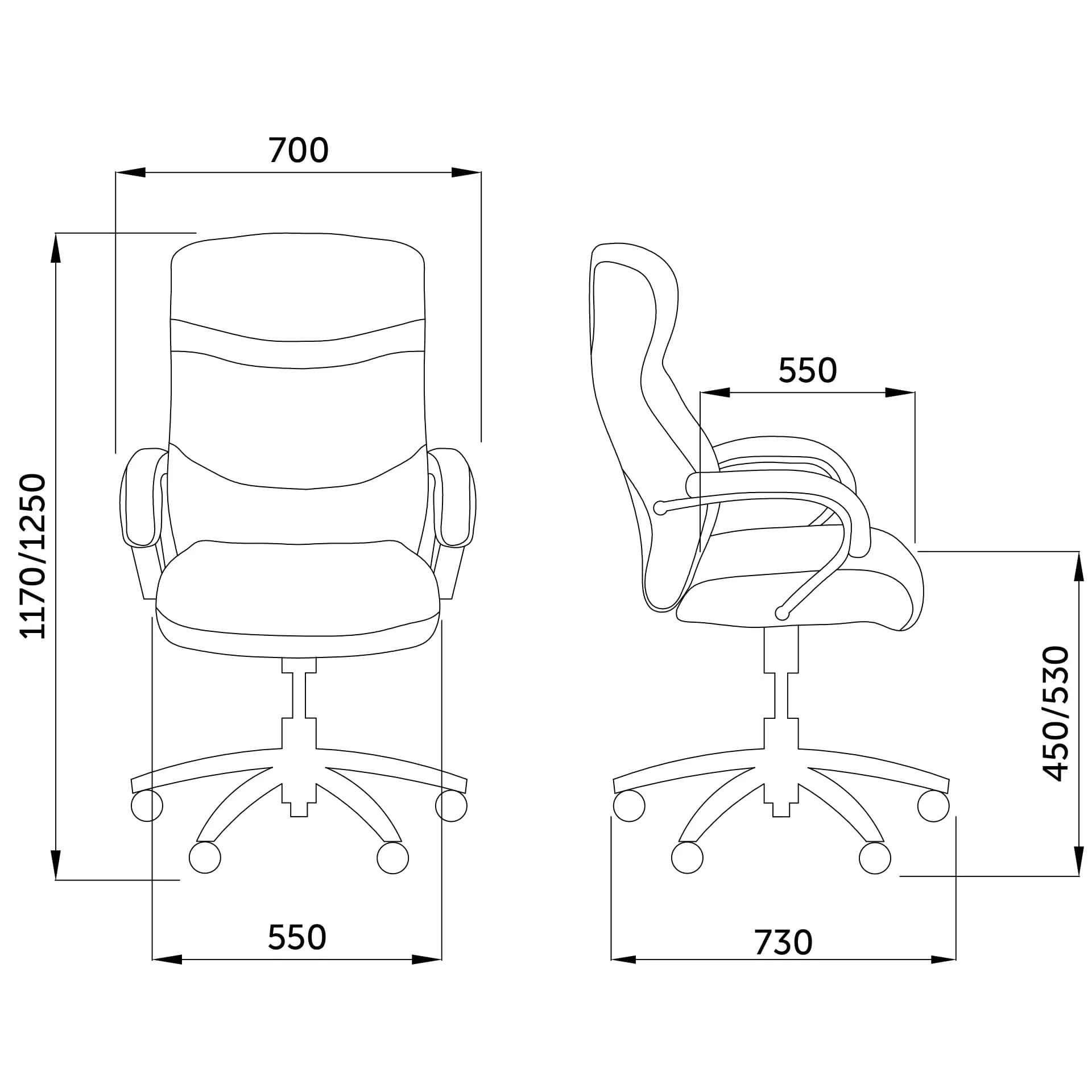 | Высота до подлокотника мин., мм | 680 |