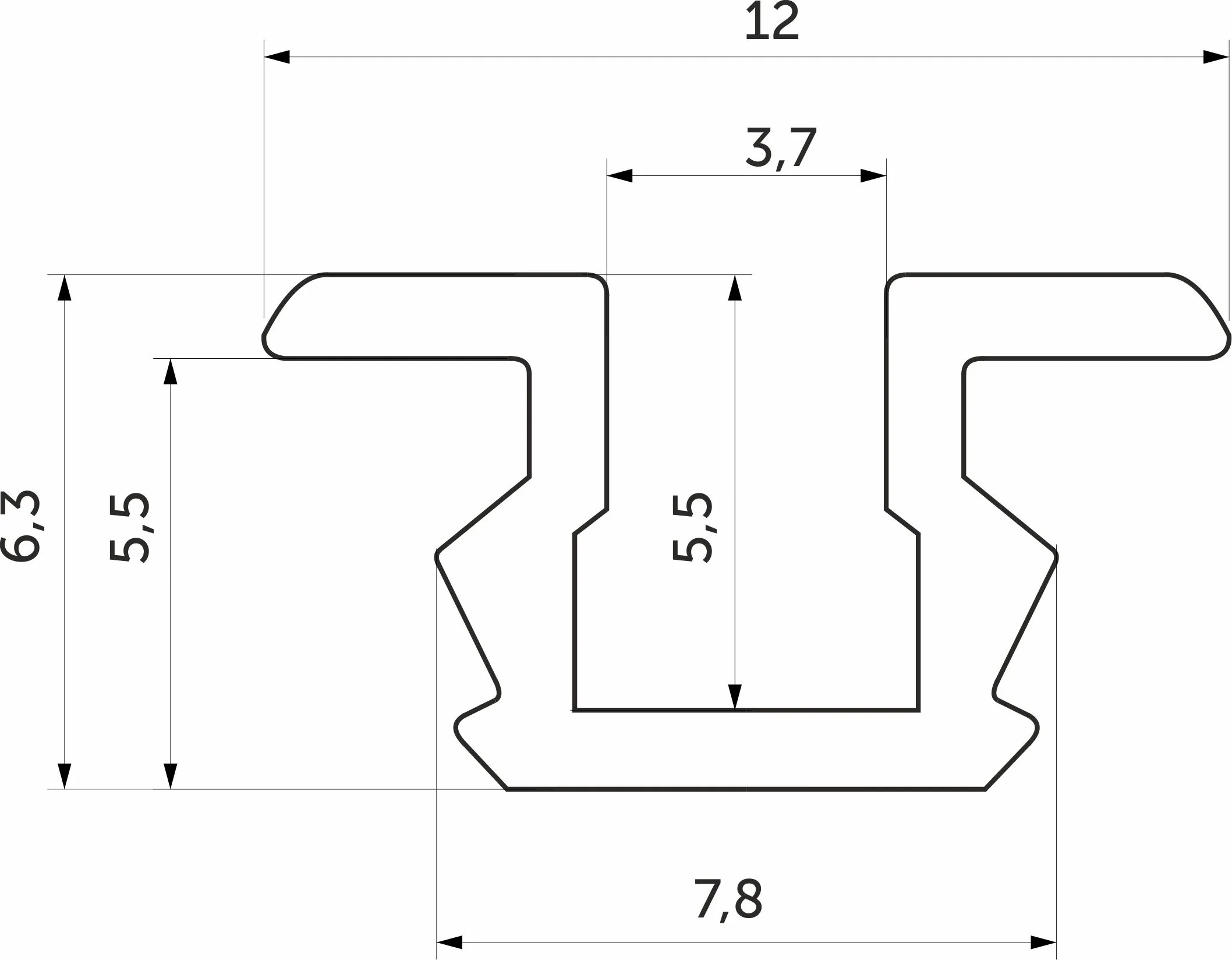 Уплотнитель ПВХ вставной черный SENATOR тип U BY (1рул.=100пог.м. ), 7,0х7,6 мм AKS