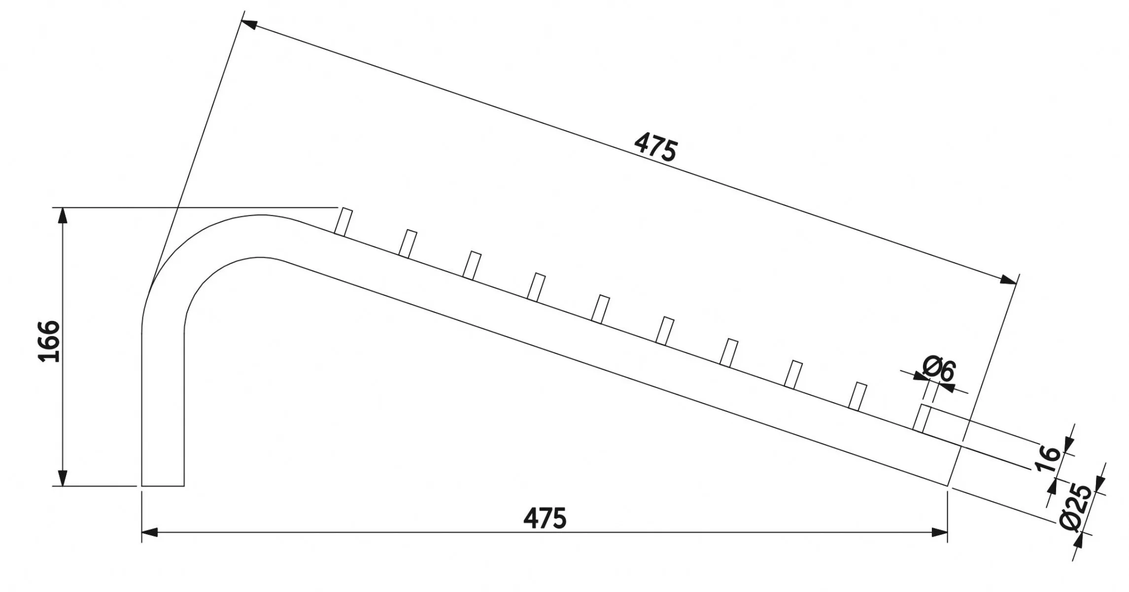 Исползуется в системе TRIS в качестве наклонной перекладины для вешалок с ограничителями. Для крепления к d25 используется параллельный, к d50 - крепление редукционное, к стене - пристенный.