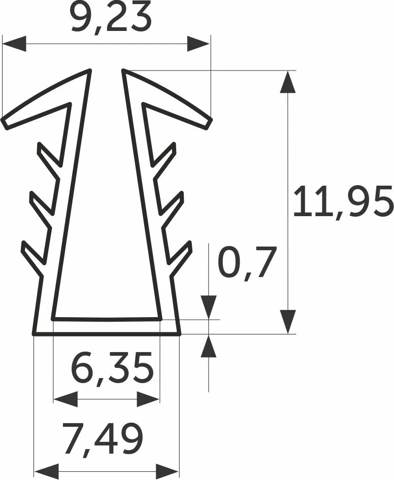 Уплотнитель ПВХ вставной для узкой сис-мы BY (1рул.=100пог.м.) VP-18, AKS