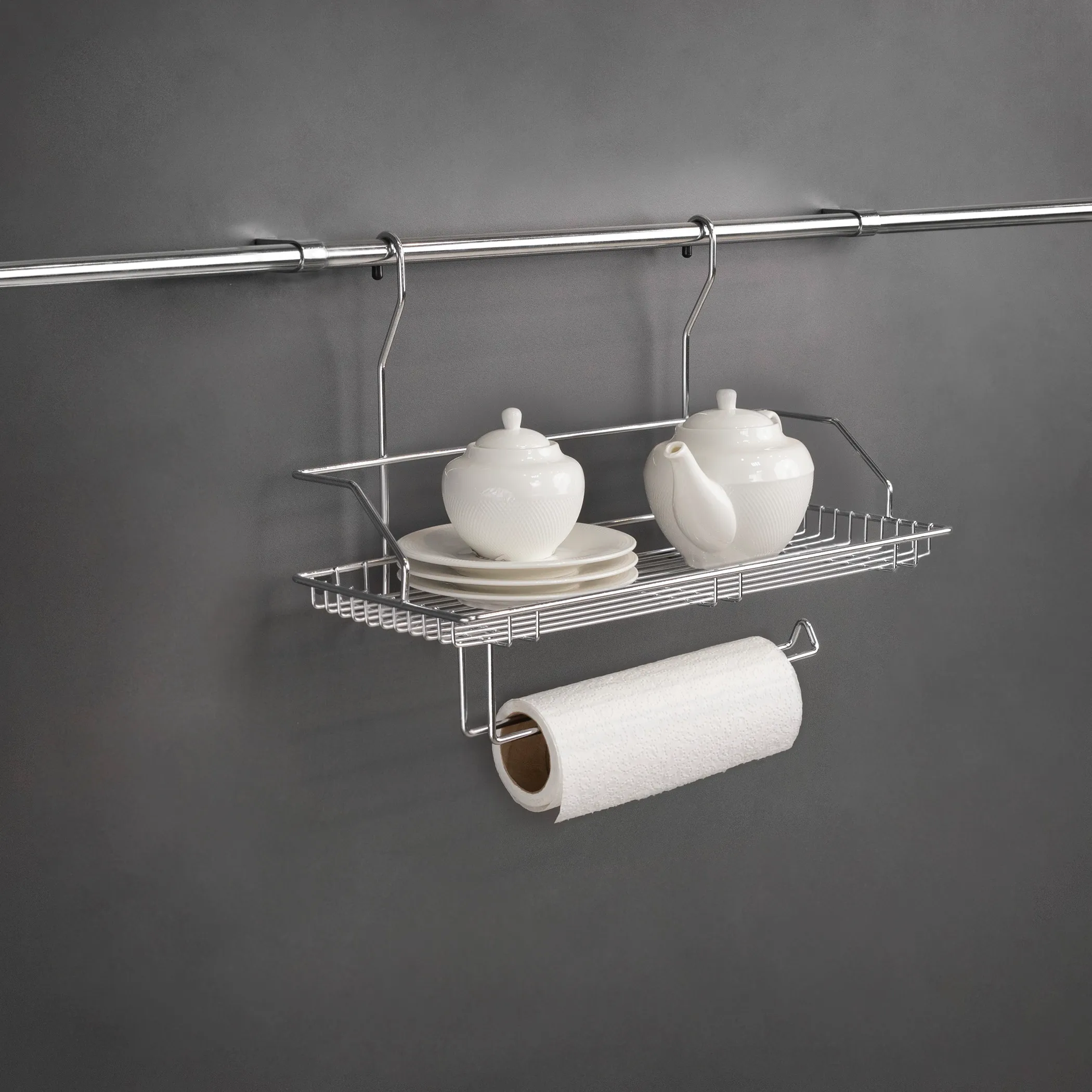 Корзина на рейлинг предназначена для удобного хранения баночек со специями и прочих мелких предметов на кухне. Также в корзине есть снизу держатель для бумажных полотенец. В дополнение необходимо приобрести трубу d16, а также держатели и заглушки для монтажа.