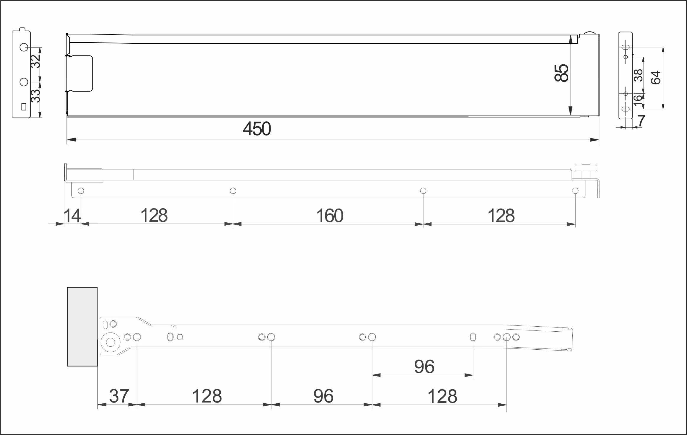 | Длина направляющей (L, мм) | 450 |