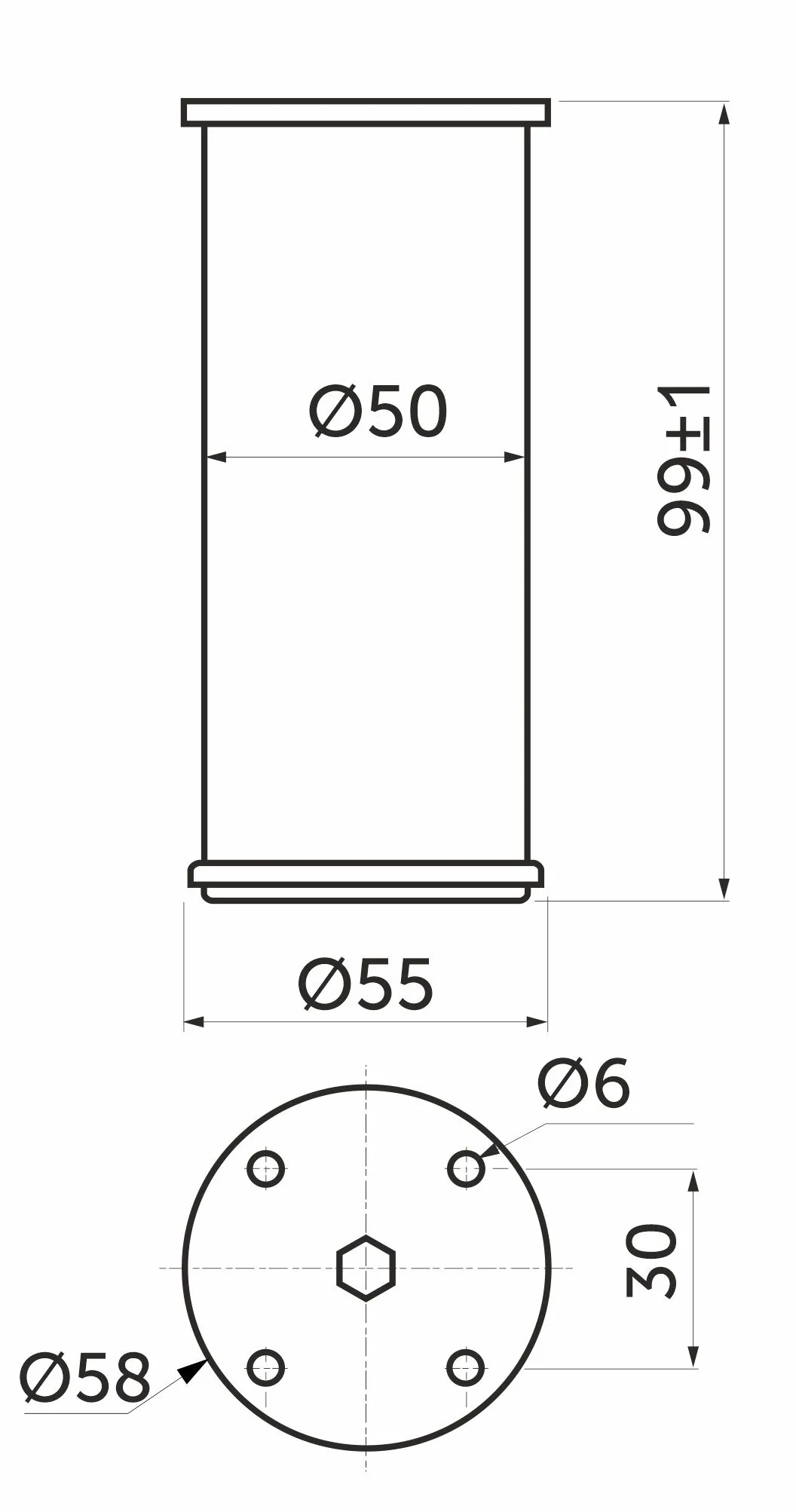 Высота 100мм. Диаметр - 50мм.