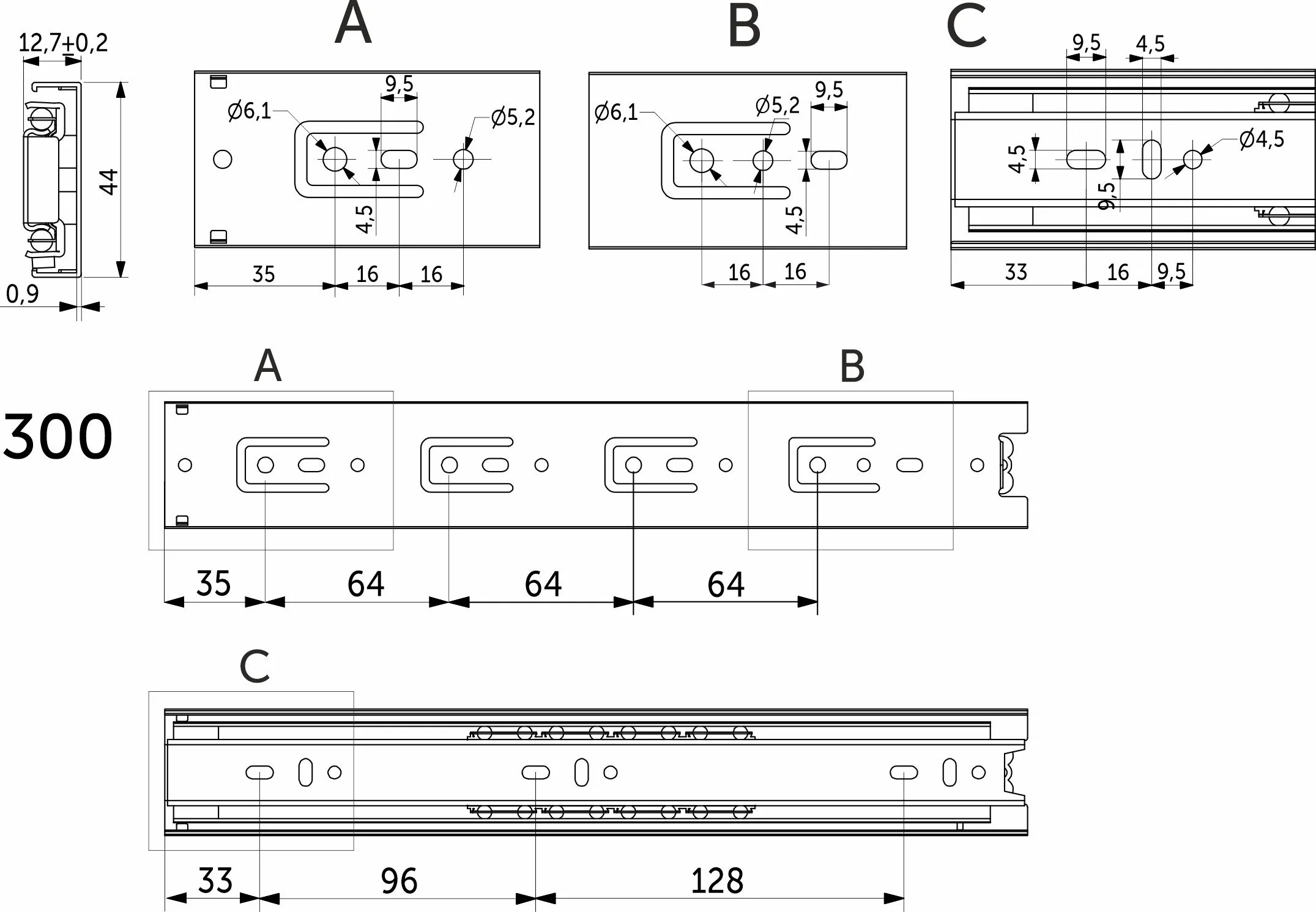 Фактическая высота данной направляющей 42,5 мм, а её длина – 300 мм.
