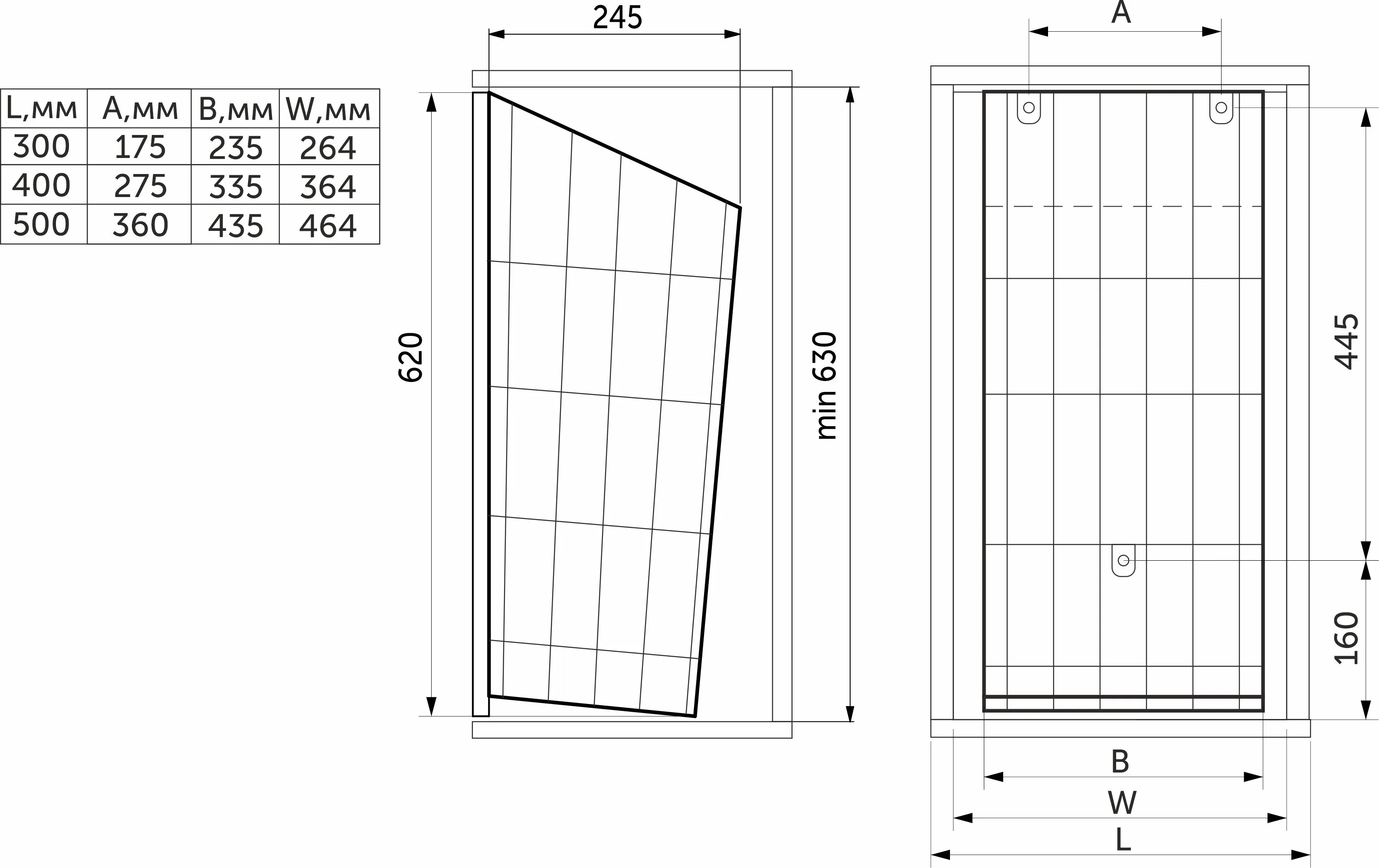 | Ширина (B, мм) | 255 |