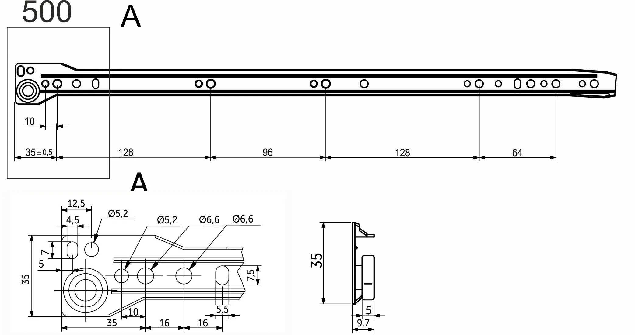 | Длина направляющей (L, мм) | 500 |