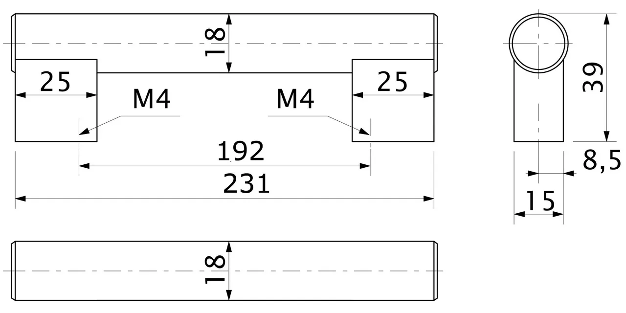 Ручка меб. скоба алюм. WPY 315 192 алюминий AKS