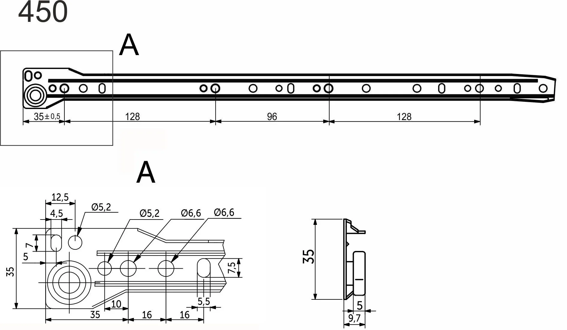 | Длина направляющей (L, мм) | 450 |