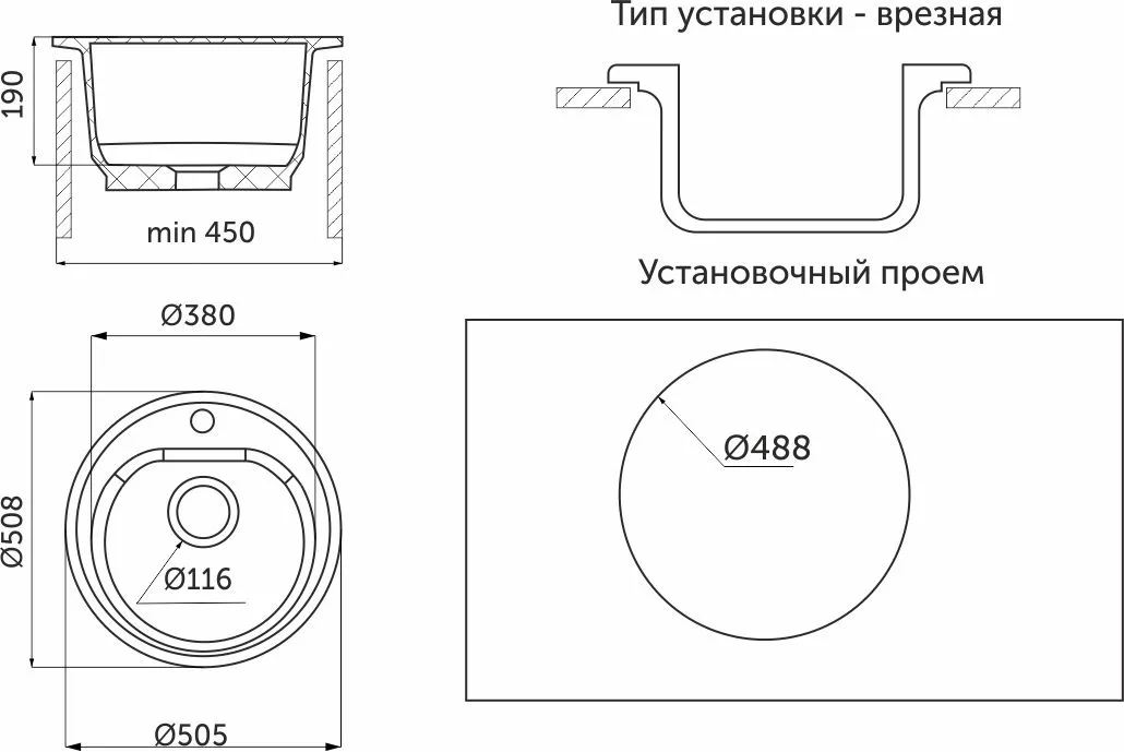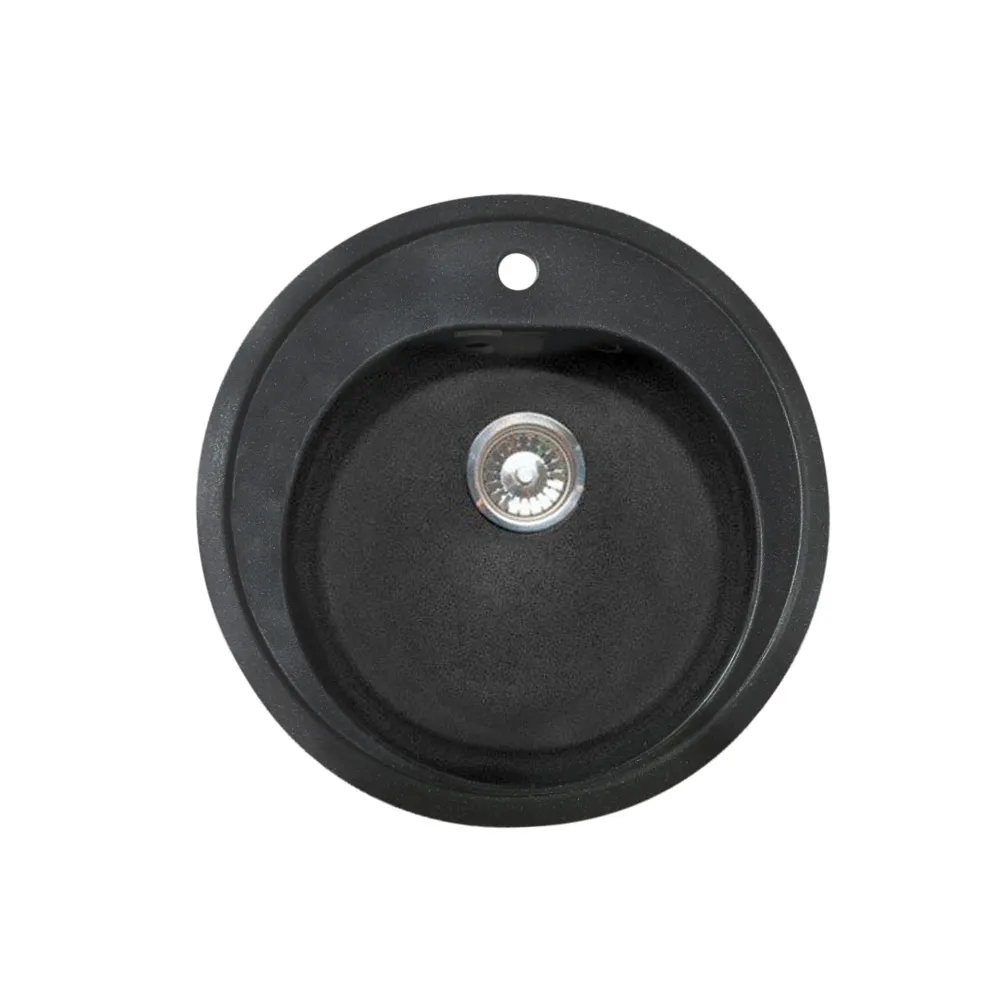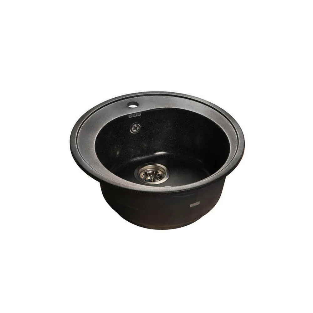 Мойка каменная, круглая одночашевая, 500*500мм, черный, врезная, Granfest