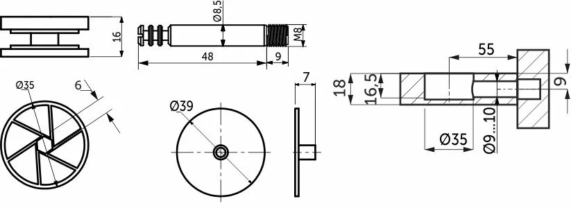 Данные стяжки состоят из непосредственно самого эксцентрика и штока соответствующего размера (для стяжки 35 мм шток с рабочей длиной 48 мм и резьбой М8).