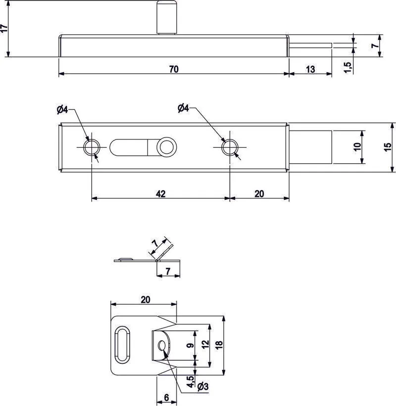 Это специальный простой в монтаже механизм, который служит для фиксации и запирания дверей мебели. Данный шпингалет характеризуется своими минималистическими размерами.