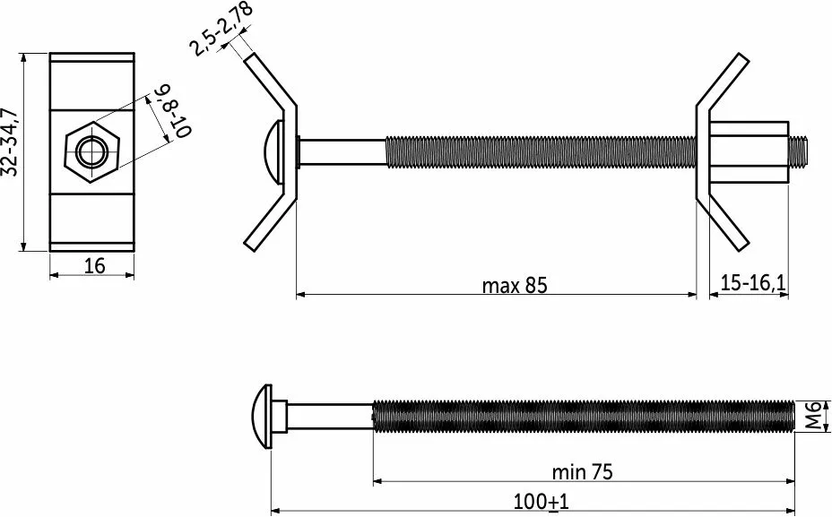 Она состоит из двух С-образных шайб, шпильки с метрической резьбой М6 и удлиненной шестигранной гайки.