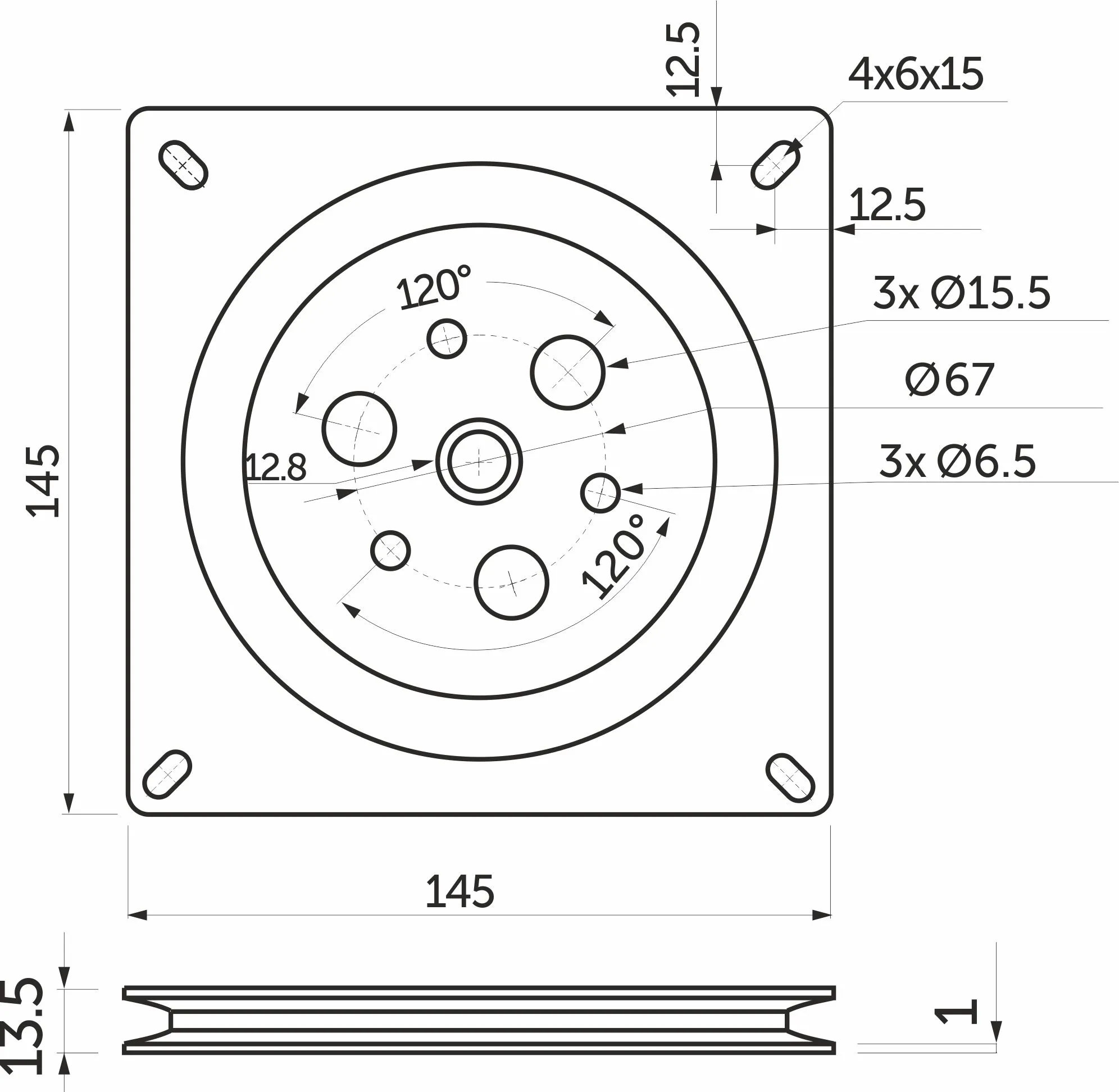 Держатель поворотный 145*145, неполный подшипник (упак. = 80 шт.) AKS