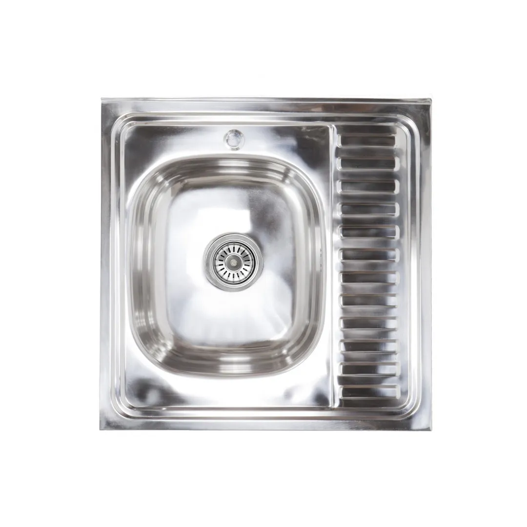 Мойка н/сталь, квадратная одночашевая, 600*600мм, полир хром, мойка справа, накладная, AKS (0,6мм)