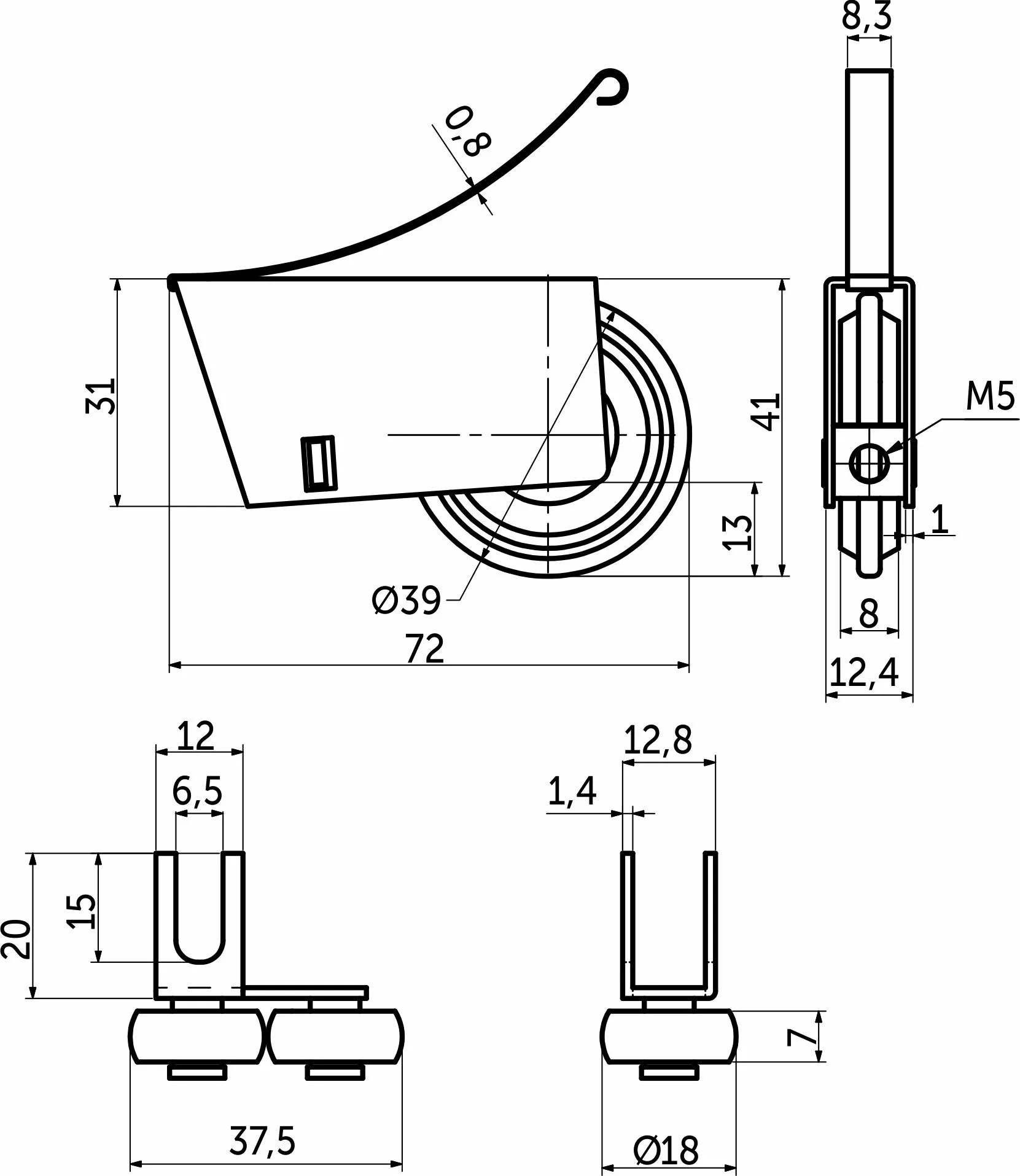 | Свойство | Ролик мебельный |