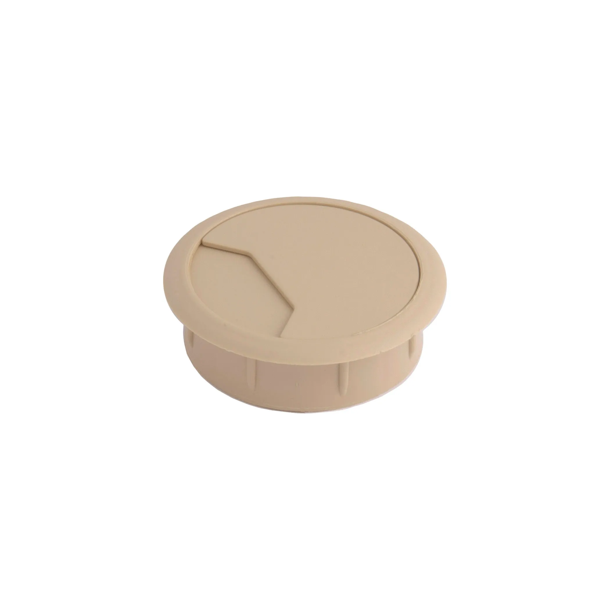 Пропуск кабельный пластиковый врезной. Габаритный диаметр изделия 70мм, размеры отверстия в столешнице - d60мм. Внутри пропуска есть съемная крышка, которая частично либо полностью закрывает отверстие для кабеля.