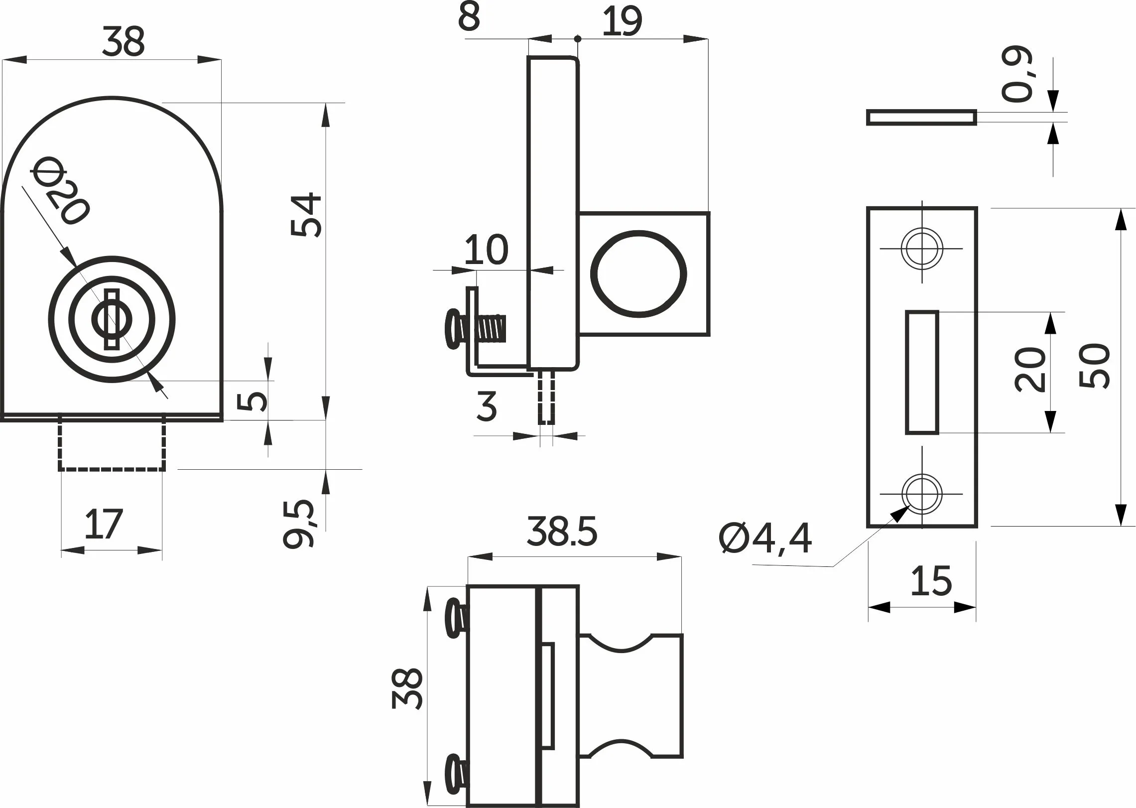 Замок для распашной двери механический 138 AKS планка мини