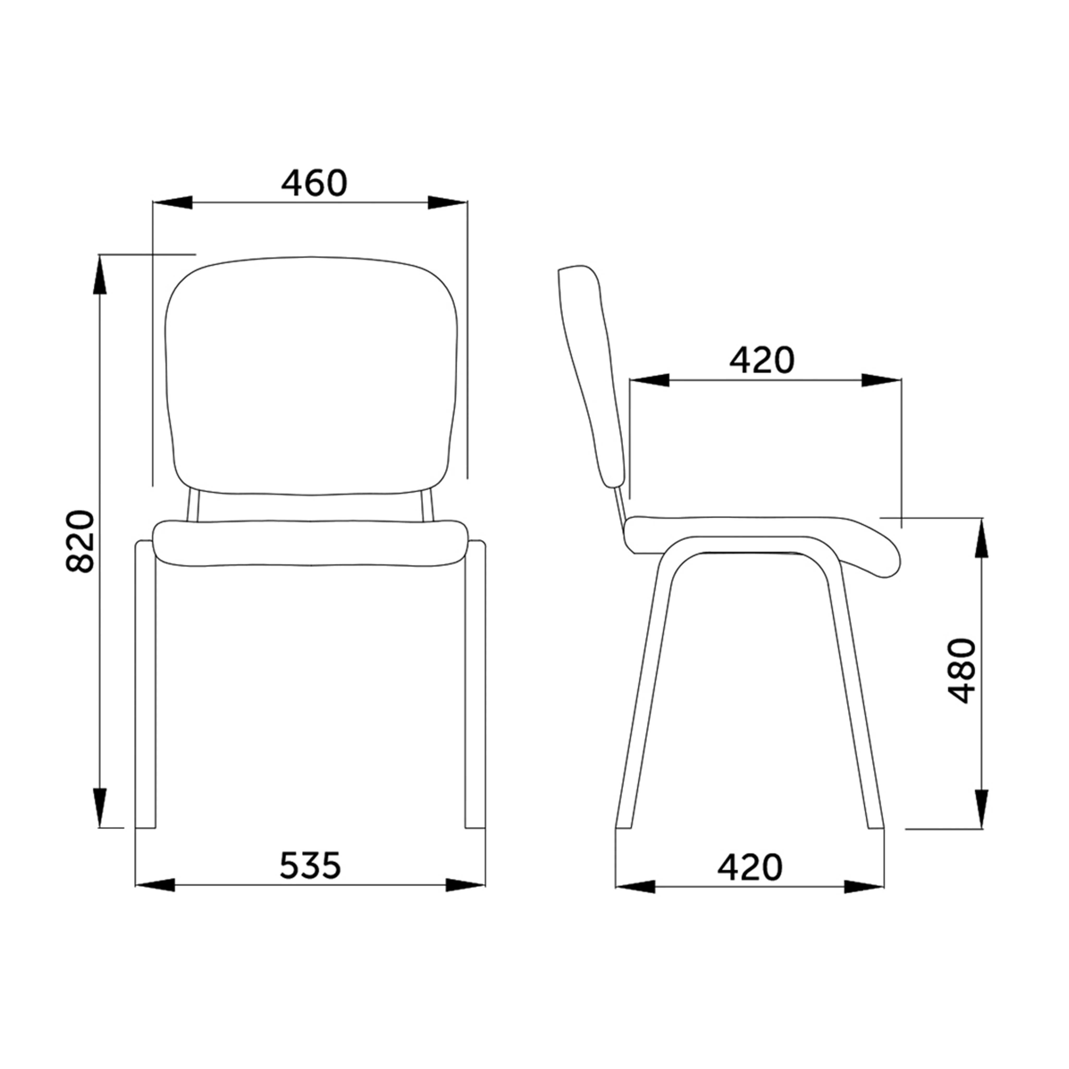 Стул состоит из металлической опоры, сиденья и спинки. Исполнение опоры – гальваническое покрытие. Гальваническое покрытие обладает высокой твердостью, высокой износостойкостью и защищает поверхность.
