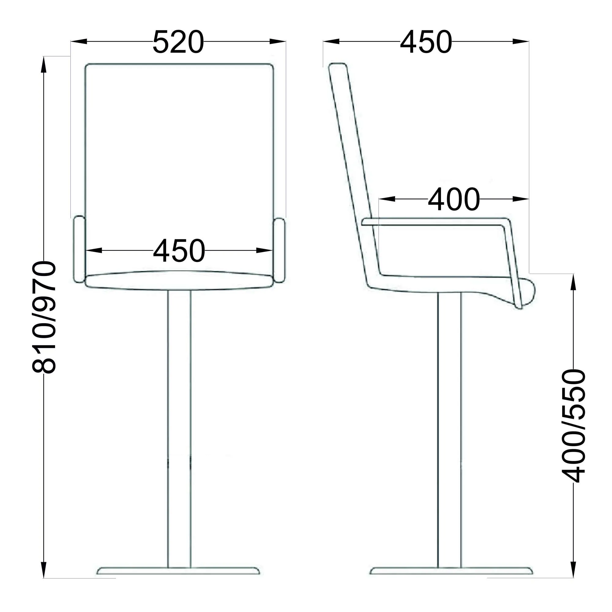 | Высота до сиденья макс., мм | 550 |