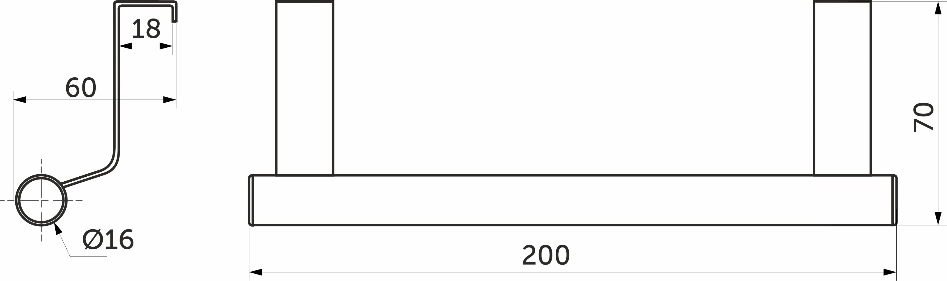 Кронштейн-релинг L-200мм с крючками на фасад, инокс