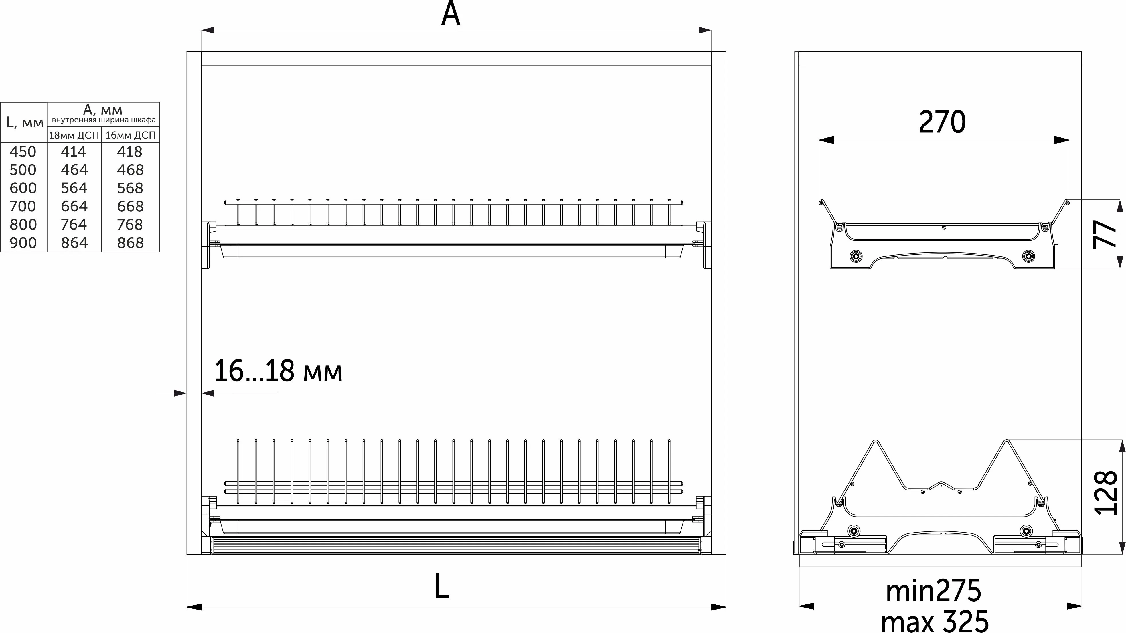-подходит для установки в ящик как с ДСП 18 мм, так и с ДСП 16 мм.
