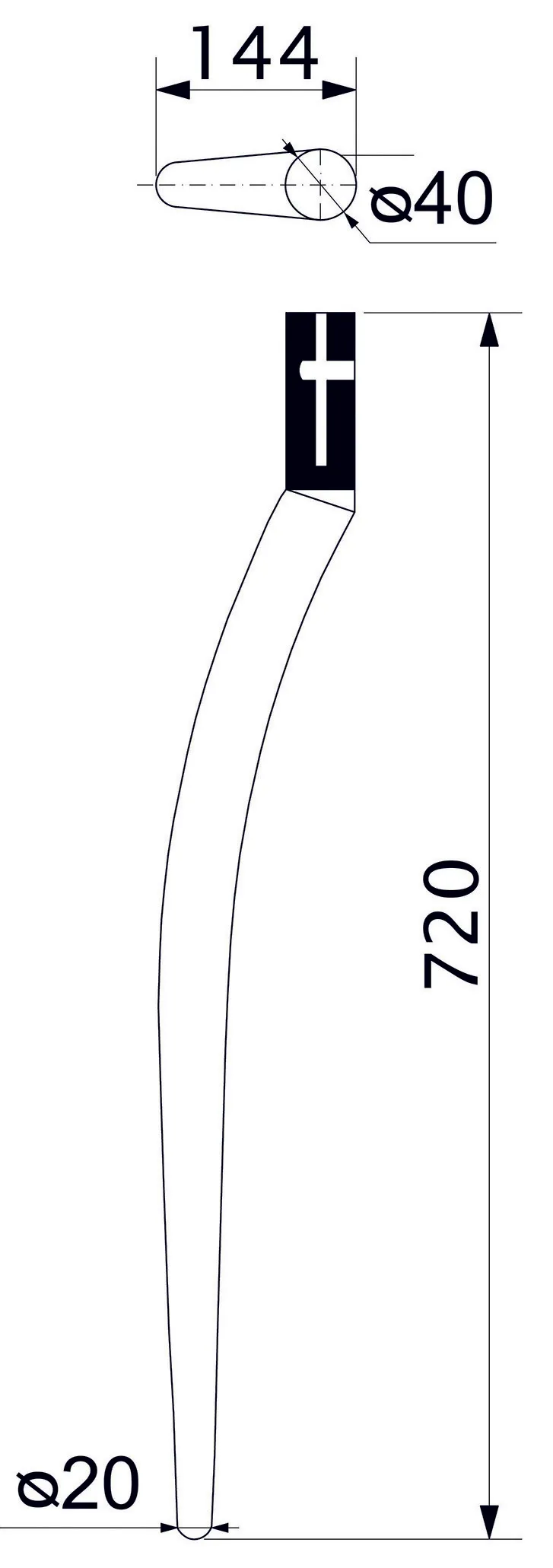 Опора меб. гнутая d40 h- 720 без гайки хром AKS